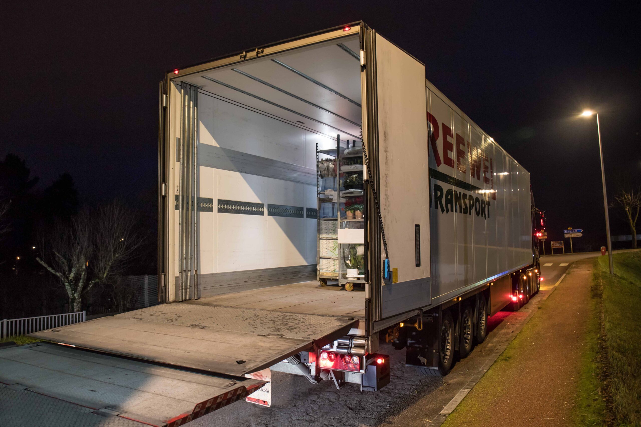 Rick baalt enorm als hij om 23.30 uur het terrein verlaat. “Normaal ben ik uiterlijk om 21.30 uur weg. Zo laat heb ik nog nooit meegemaakt.” De teleurstelling is gelukkig vlug verdwenen en we door de duistere nacht rijden we in zuidelijke richting. Rick maakt deze rit enkele keren per week en toch is het altijd anders. “De ene keer hoef ik alleen om te koppelen, een andere keer duw ik de karren letterlijk bij de bloemisten naar binnen. Dat maakt het werk zo leuk.”