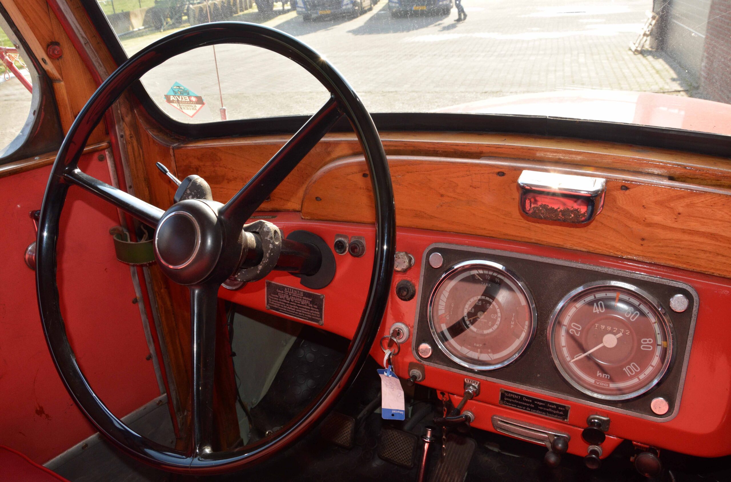 - In het interieur is te zien dat de cabine voor een deel uit hout bestaat.