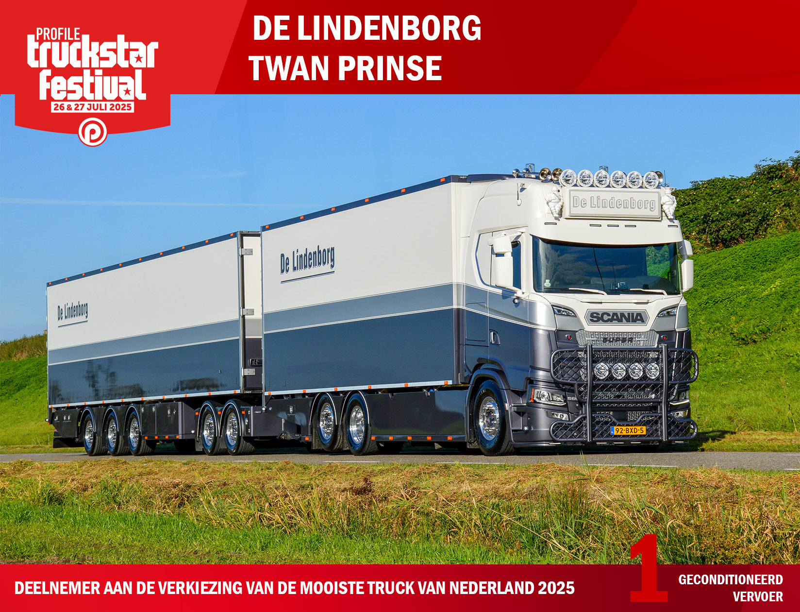 Het is al even geleden dat een vrachtwagen uit categorie 1 – geconditioneerd vervoer er vandoor ging met de titel Mooiste Truck van Nederland. Daarvoor moeten we terug naar 2010 en de Scania van Rob Waasdorp. Vorig jaar werd de Scania S520 van De Lindenborg met chauffeur Remco Otjens nummer 1 in deze categorie. In 1996 werd de Volvo FH12 van R. de Mooi verkozen tot de Mooiste Truck van Nederland.