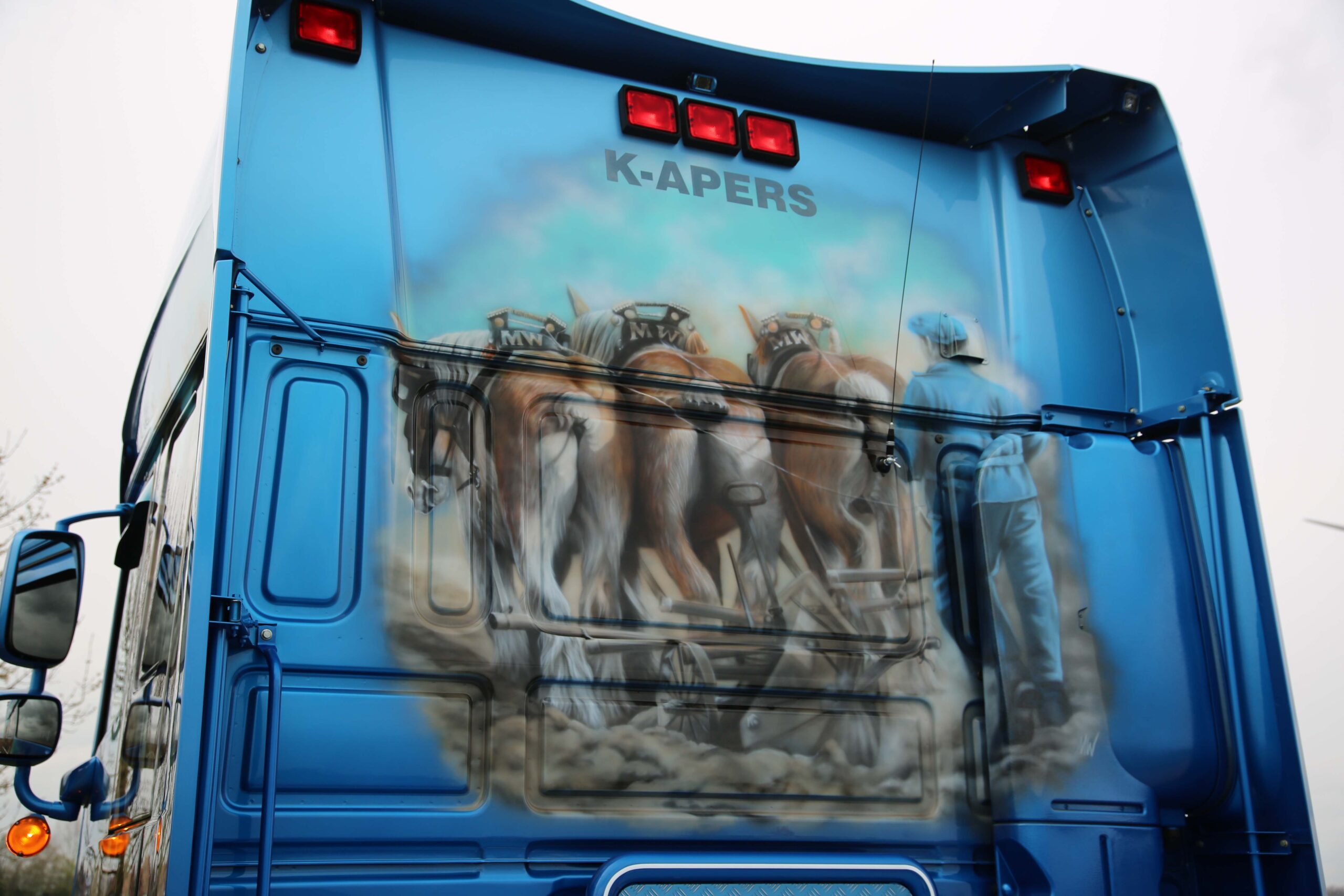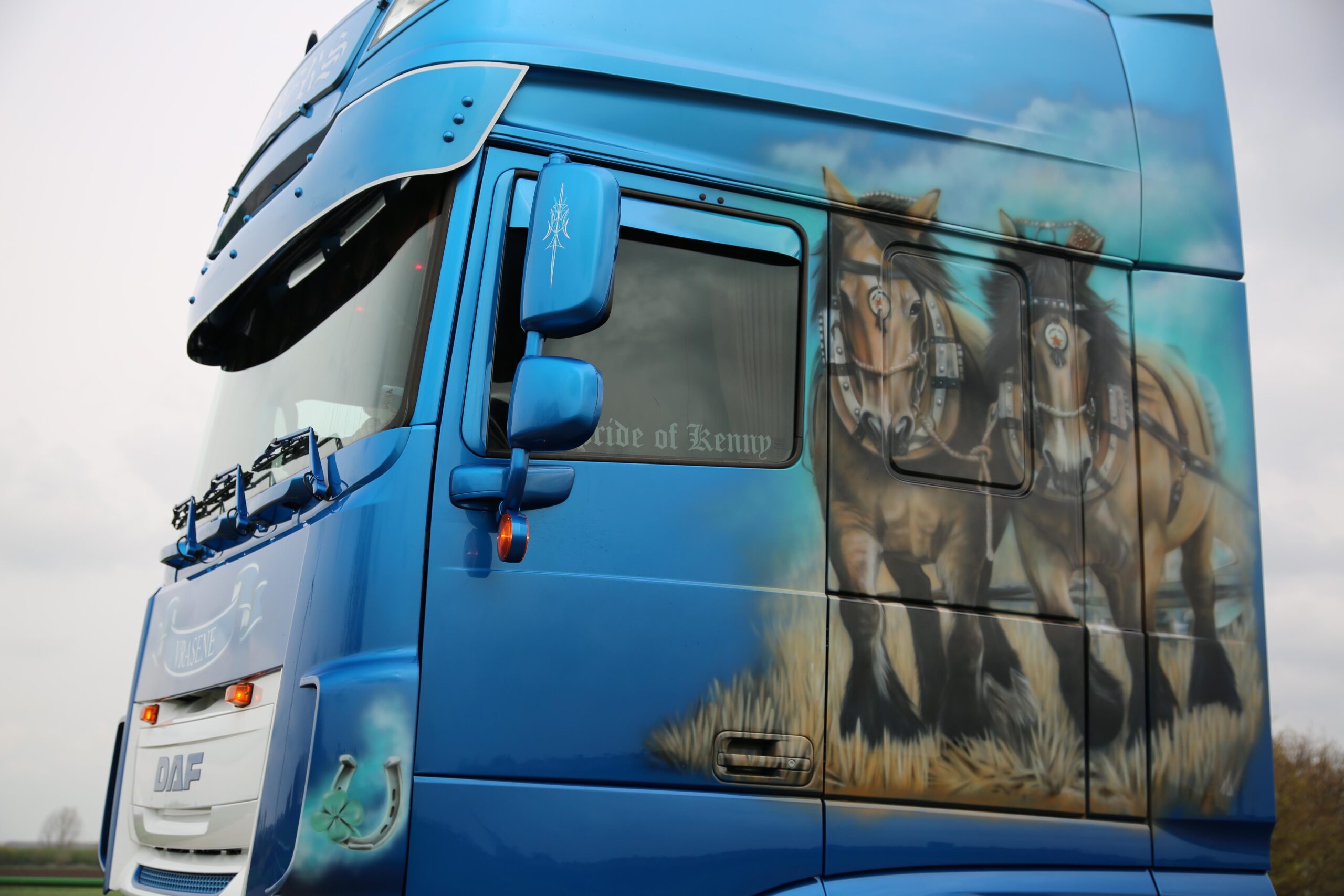 - Kenny wilde afbeeldingen van stoere trekpaarden op de cabine.