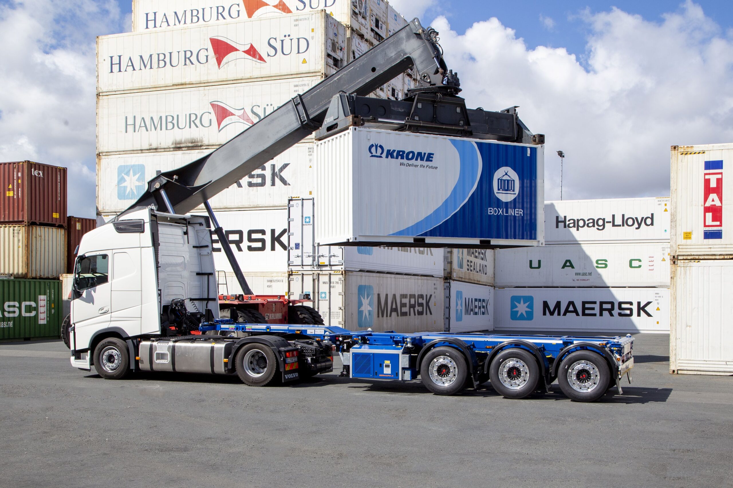 Trailerfabrikant Krone is aanwezig met een geheel vernieuwd containerchassis, de Box Liner eLTU70. Ook vind je er de vertrouwde Profi Liner schuifzeilentrailer.