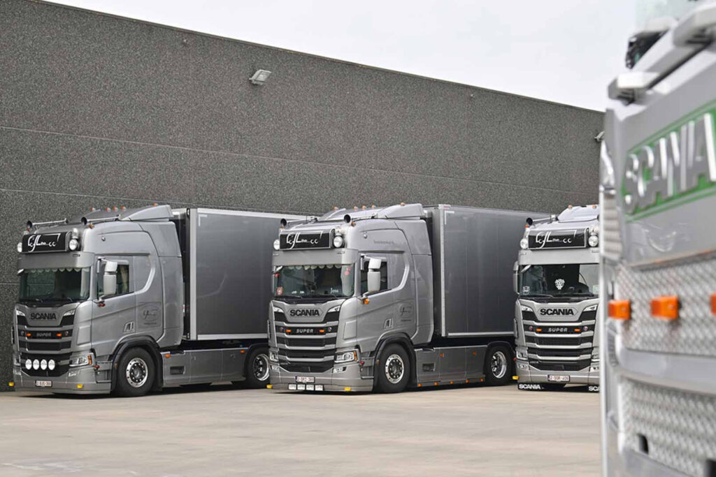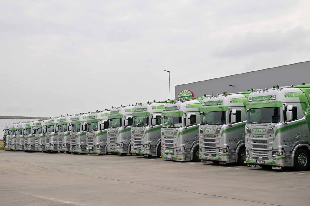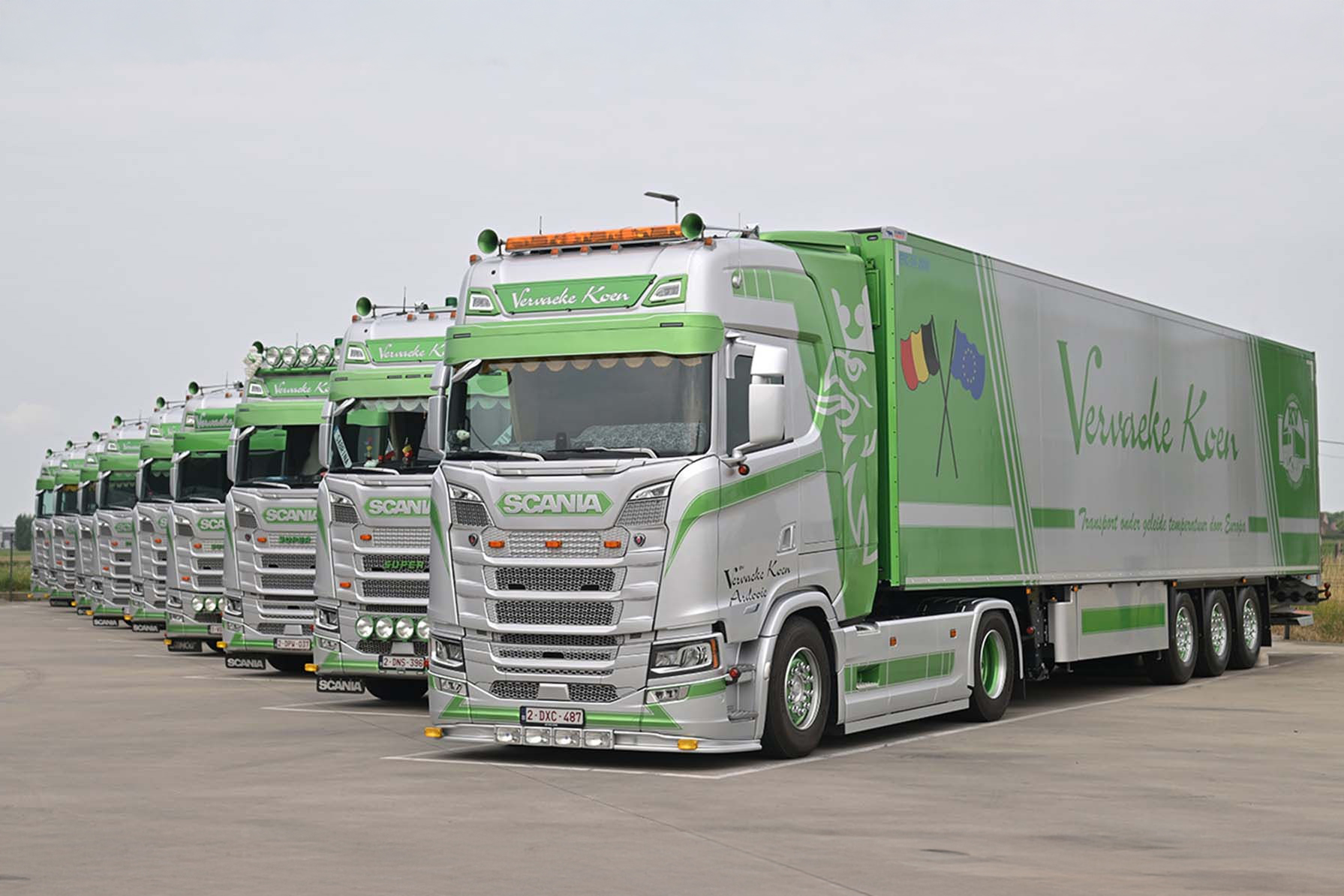 Beide bedrijven kiezen voor een park dat voor 100% bestaat uit Scania. De overstap naar het Zweedse merk is een bewuste keuze. “Twintig jaar geleden werd de eerste Scania toegevoegd aan onze vloot, waarin bijna elk merk vertegenwoordigd was,” zegt Koen Vervaeke. “Door deze ervaring zijn we tot de conclusie gekomen dat geen enkel ander merk Scania evenaart op het vlak van prestaties, rijervaring en verbruik, dat bij ons schommelt tussen de 23 en 26 l/100 km.”