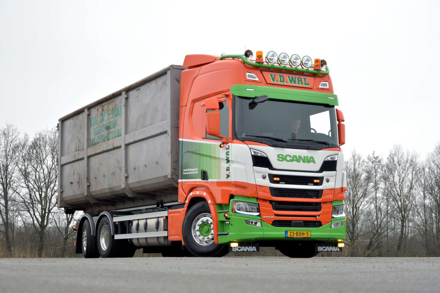 Van der Wal Transport werd opgericht in 1963 in het Friese Warga, onder de rook van Leeuwarden. Het bedrijf reed in die jaren ondermeer voor Frico. Later specialiseerde Van der Wal zich in de transporten van losgestorte goederen in de recycling business. De eerste jaren werden er gebruikte Scania trucks ingezet en die bevielen zodanig goed dat in 1976 de eerste nieuwe Scania werd aangeschaft, een Scania LB 111 6×2 met een vaste aluminium kipper. Sinds de verhuizing van het bedrijf naar Heerenveen in 1986 ging het hard, en de vloot groeide uit naar 60 trekkende eenheden. Van dat aantal rijden er 22 trucks in de kleuren van Schotpoort Container Transport in Eerbeek, wat ook tot Van der Wal Transport behoort.