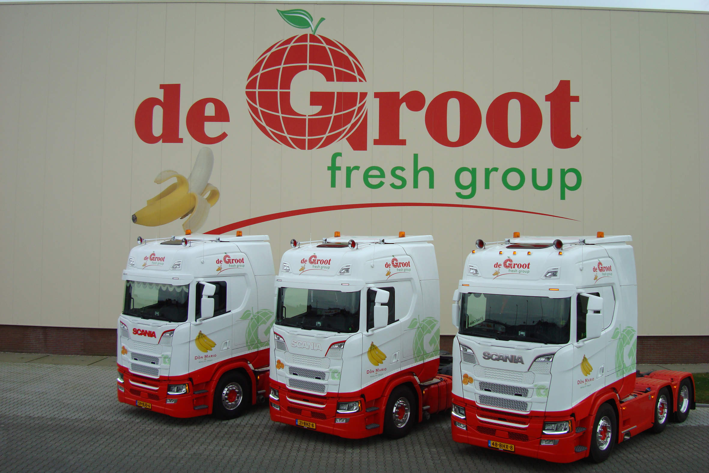 De Groot Global Logistics, onderdeel van De Groot Fresh Group uit Hedel, zette recent de handtekening voor de levering van 11 New Generation Scania’s. Het zijn de eerste Scania’s die het bedrijf in gebruik neemt sinds 2008. Het gaat om tien stuks S450 trekkers en één S520 V8, alle met een gestuurde voorloopas.