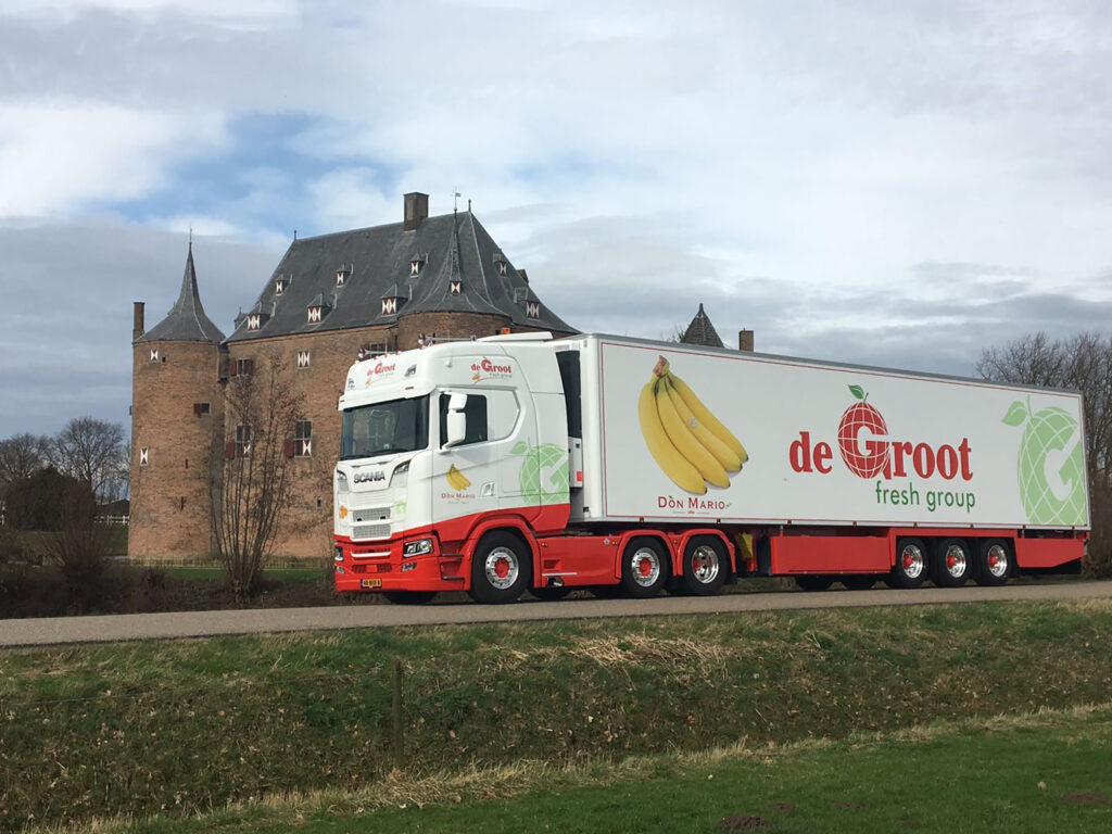 “Wij presenteren ons als een top bedrijf, met een degelijke uitstraling. Wij doen weinig aan reclame en houden ons meestal afzijdig van de publiciteit. Wij besteden daarom veel aandacht aan ons wagenpark en proberen ons hiermee te onderscheiden, jong materiaal wat fris en schoon is, in de vertrouwde huisstijl van De Groot Fresh Group. Dan wil je ook met het nieuwste voor de deur komen.” Licht Rob Vissers toe. “Scania heeft momenteel de nieuwste truck. Wat verder meespeelt, zijn de goede geluiden die wij horen over het verbruik van de 450pk SCR-only motor. En een voordeel voor ons is, dat de Scaniadealer vlak bij ons hoofdkantoor in Hedel zit. Tenslotte koop je niet alleen een auto, het gaat ook om welke ondersteuning daar achter zit.”
