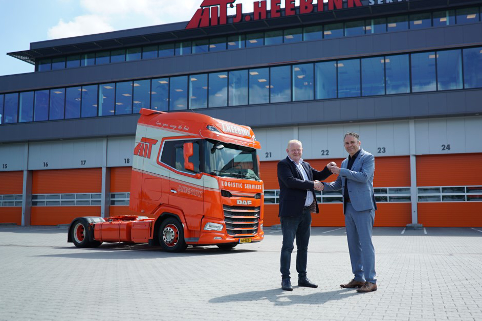 Dubbel feest bij J. Heebink Logistic Services in Veenendaal: onlangs is de 125ste DAF afgeleverd én als eerste in de nieuwe huisstijl van het bedrijf. Het gaat om een fraaie DAF XG+. Van dit topmodel heeft Heebink er in totaal 15 besteld. De aflevering daarvan is in ‘vertrouwde’ handen van DAF dealer Bakker Bedrijfswagens BV, waarmee het Veenendaalse transportbedrijf een lange relatie heeft.
