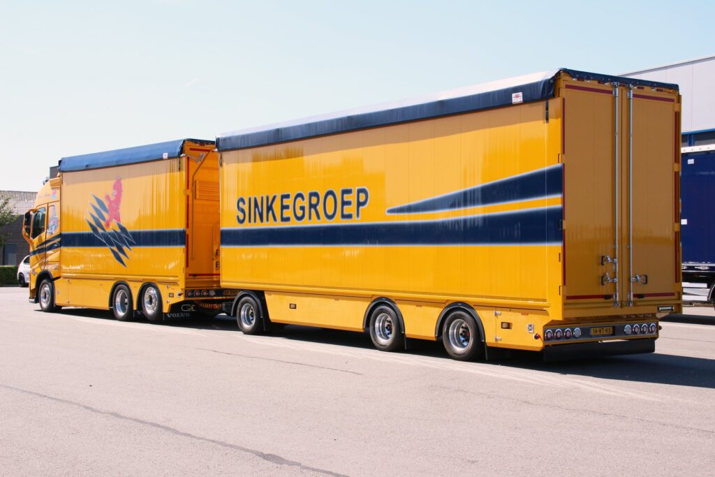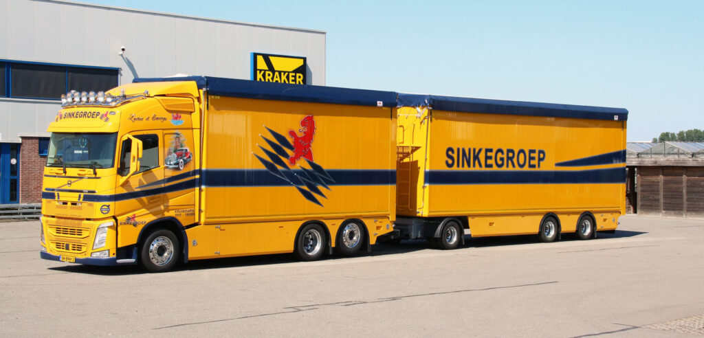 Kraker trailers heeft voor de Sinkegroep een combinatie opgebouwd waarbij de focus lag op volume en een zo laag mogelijk eigen gewicht. Het resultaat is een bijzonder fraai afgewerkte en opvallende combinatie.