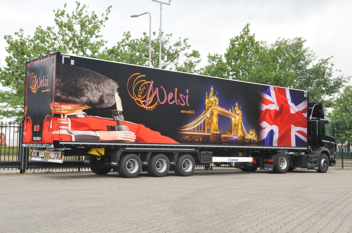 Modern, jong materieel en een opvallende huisstijl die geen twijfel laat over de specialiteit van Welsi kenmerken de trailervloot. Directeur Geert Schoolmeesters: “Dat zijn we aan onze klanten verplicht. We bestaan ruim 25 jaar en in die tijd hebben we zorgvuldig onze relaties met onze klanten, vele daarvan zijn Brits, opgebouwd. In de dagelijkse praktijk willen wij beschikken over goed en betrouwbaar materieel. Ferry of shuttle op en af en afwisselende omstandigheden, zowel op de Britse eilanden als op het Europese vasteland.”