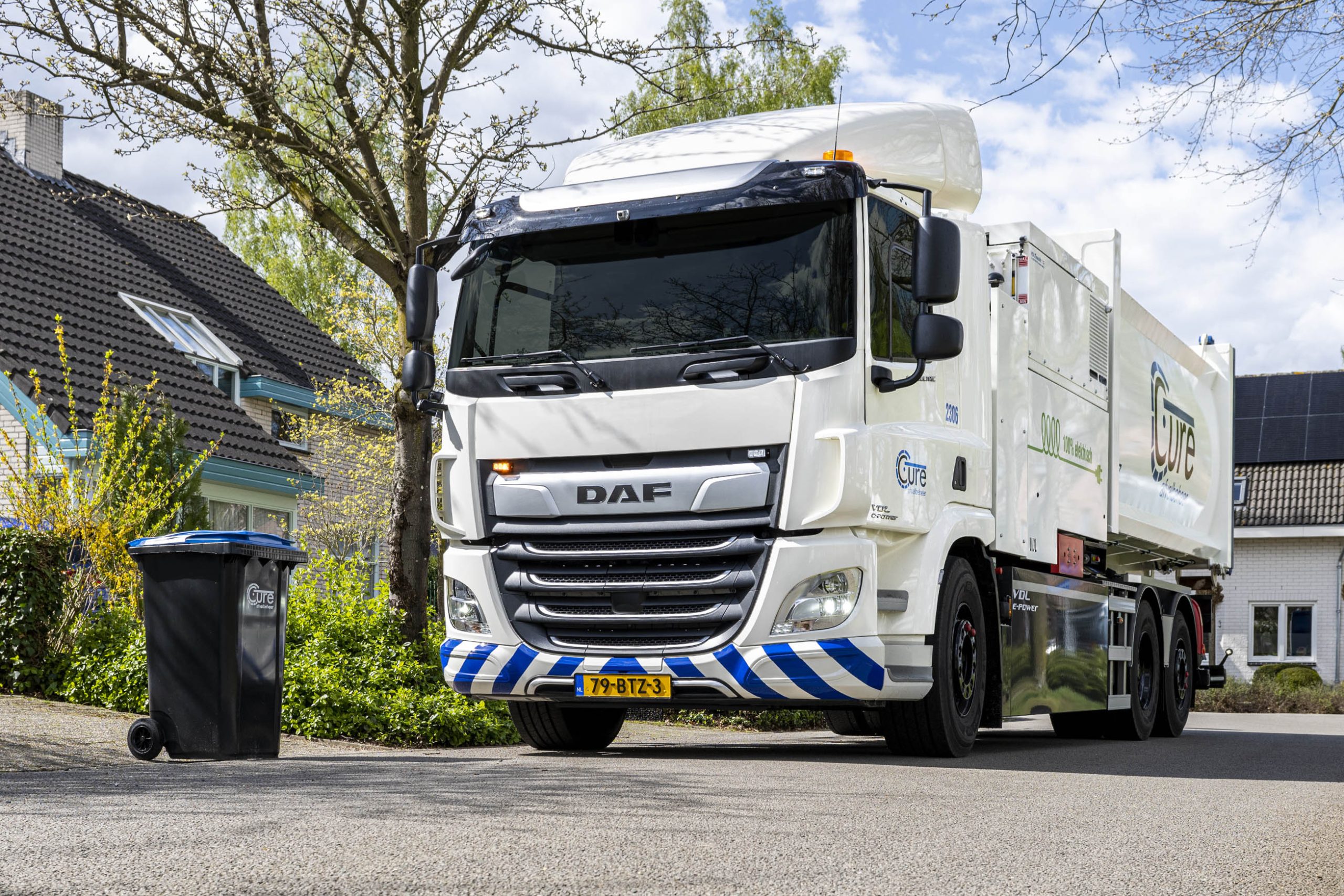 De nu geleverde voertuigen zijn uitgerust met een elektrische zijlader van VDL. Vuilcontainers kunnen hiermee stil en geheel automatisch worden geleegd in de opbouw van de CF Electric. De komende tijd neemt Cure Afvalbeheer nog eens 7 DAF’s CF Electric in gebruik. Zes daarvan zullen voorzien zijn van een eveneens volledig elektrische achterlader. Het zevende voertuig krijgt een spoelinstallatie voor het schoonmaken van onder- en bovengrondse verzamelcontainers.