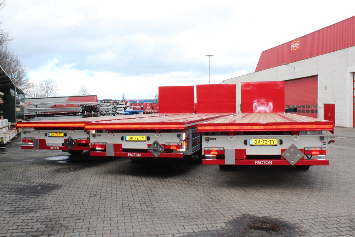 Logi Trans schafte tien Pacton drie-assige vlakke trailers aan, van het type TXD.345.L-4222. Daarnaast wordt een viertal nieuwe Pacton semi-diepladers ingezet, type SXD.347.L-2. De opleggers typeren zich, naast de robuuste uitvoering, door de brede inzetbaarheid. De vlakke trailers hebben 18 ton koppelingsdruk en een totaal toelaatbaar gewicht van 45.000 kg. De opleggers zijn voorzien van diverse bindvoorzieningen, waaronder 13 stuks achttons bindogen per zijde in het randprofiel, touwhaken en vele rongen. Het BPW-luchtveerstel heeft drie assen met trommelremmen, met een technisch draagvermogen per as van 9.000 kg. In de hardhouten vloer bevinden zich container-twistlocks.