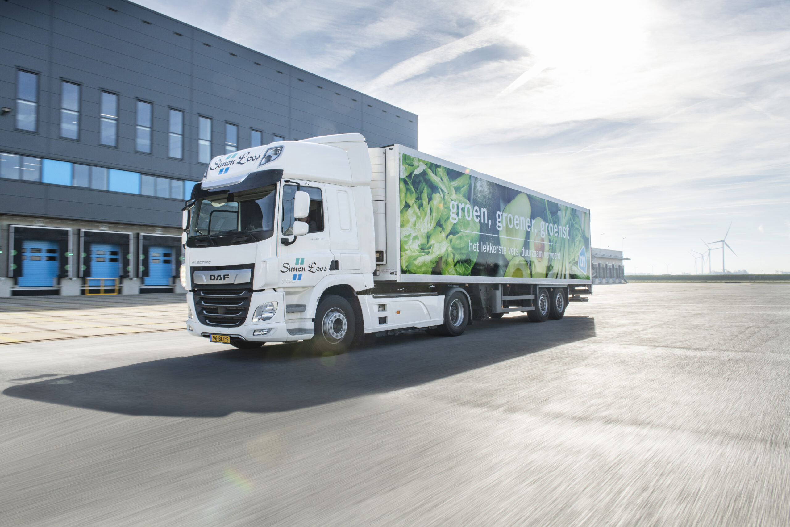 Jumbo Supermarkten, Rhenus Logistics, Simon Loos en Tinie Manders rijden een aantal routes inmiddels volledig elektrisch met een DAF CF Electric.