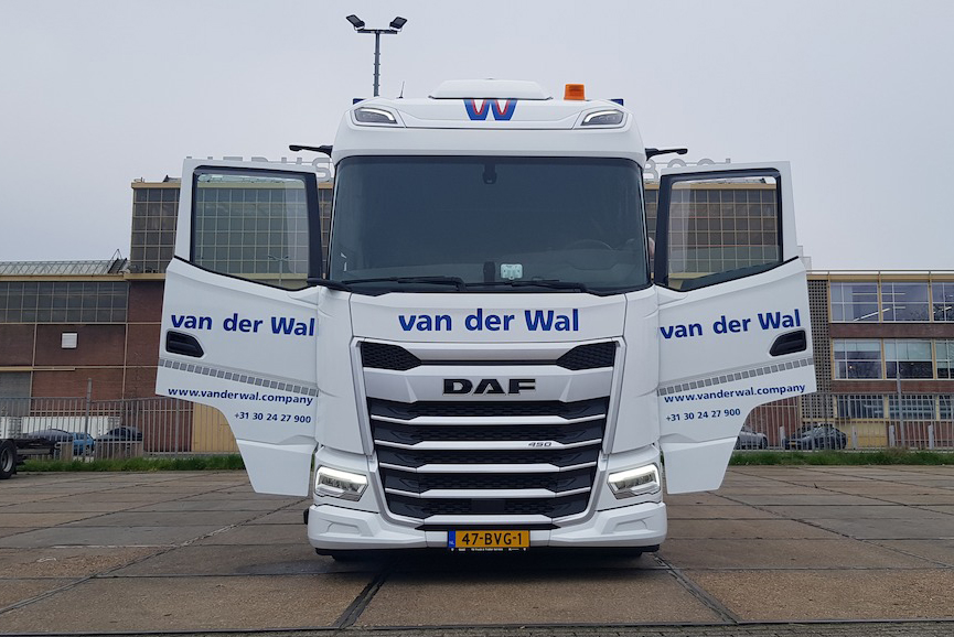 Van der Wal heeft onlangs de eerste serie van vier uit tweeëntwintig DAF XG 450 FAR lowdeck motorwagens in gebruik genomen. Het bijna 100-jarige transportbedrijf uit Utrecht geeft aan dat duurzaamheid, comfort voor de chauffeur en veiligheid de belangrijkste overwegingen zijn geweest bij deze aanschaf.