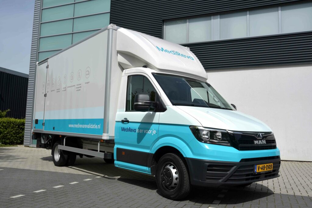 De MAN TGE bestelwagens zijn uitgerust met grote schermen met navigatie, parkeersensoren en achteruitrijcamera’s. Verder zijn de voertuigen volledig ingericht door CargoFlex met onder meer uitvouwbare oprij-rampen. Eerst werden ze door MAN-dealer Den Engelsen voorzien van betonplex interieurs als stevige basis. MediReva Revalidatie koos voor de 140 pk uitvoering met een manuele transmissie. De voertuigen worden voor vijf jaar in volledige operational lease genomen via mobiliteitsadviseur WE-Mobility.