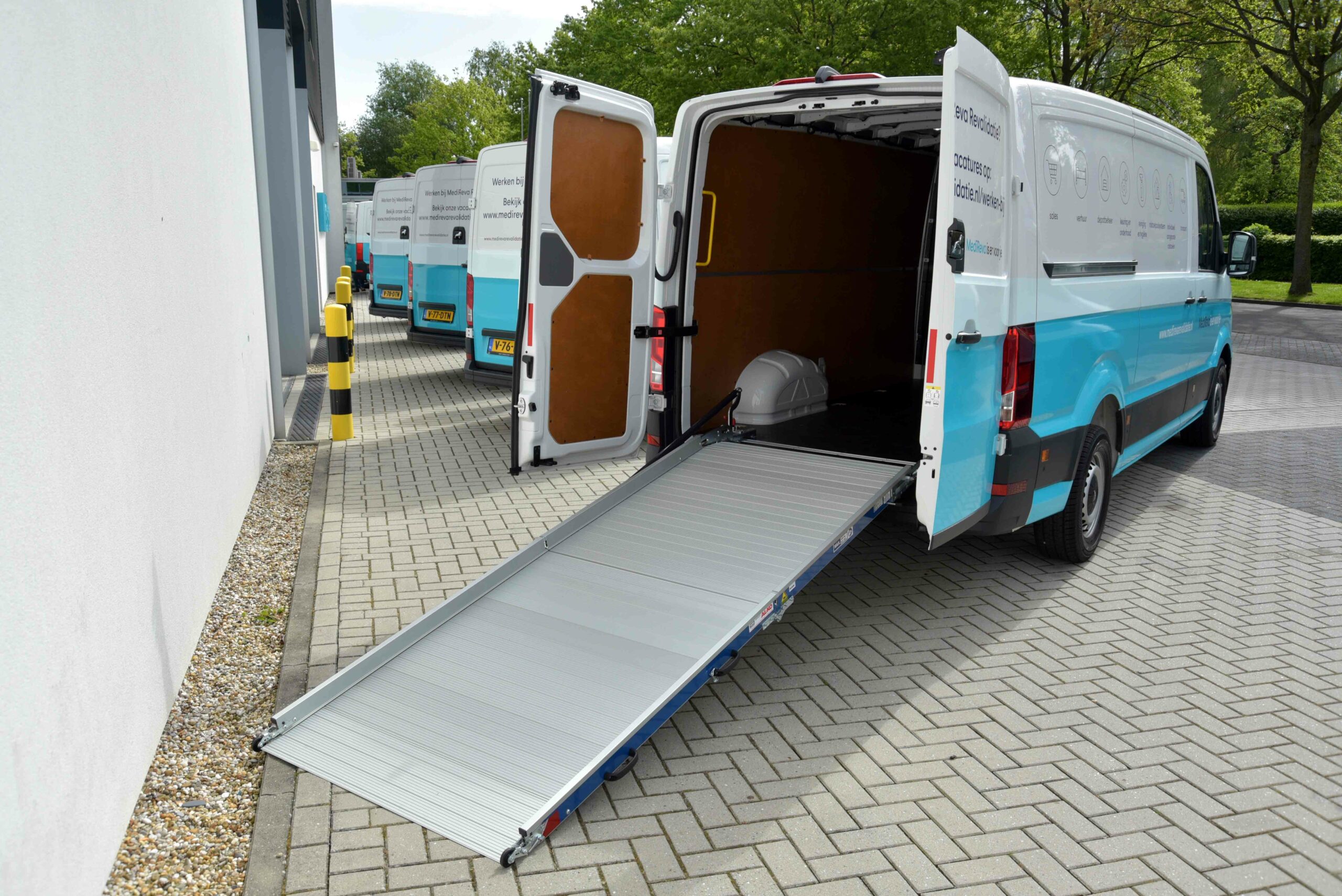 De MAN TGE bestelwagens zijn uitgerust met grote schermen met navigatie, parkeersensoren en achteruitrijcamera’s. Verder zijn de voertuigen volledig ingericht door CargoFlex met onder meer uitvouwbare oprij-rampen. Eerst werden ze door MAN-dealer Den Engelsen voorzien van betonplex interieurs als stevige basis. MediReva Revalidatie koos voor de 140 pk uitvoering met een manuele transmissie. De voertuigen worden voor vijf jaar in volledige operational lease genomen via mobiliteitsadviseur WE-Mobility.