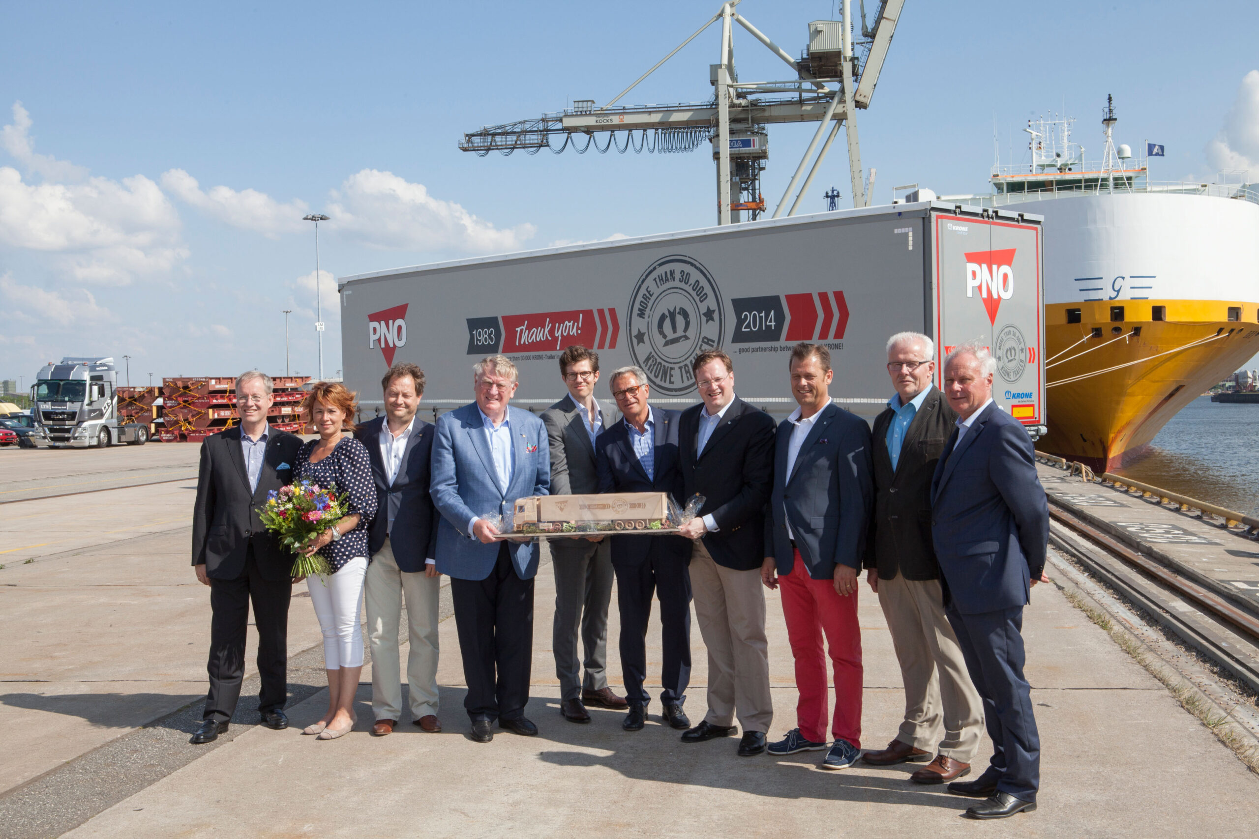 Onlangs werd in de haven van Hamburg de 30.000e Krone-trailer voor PNO afgeleverd.