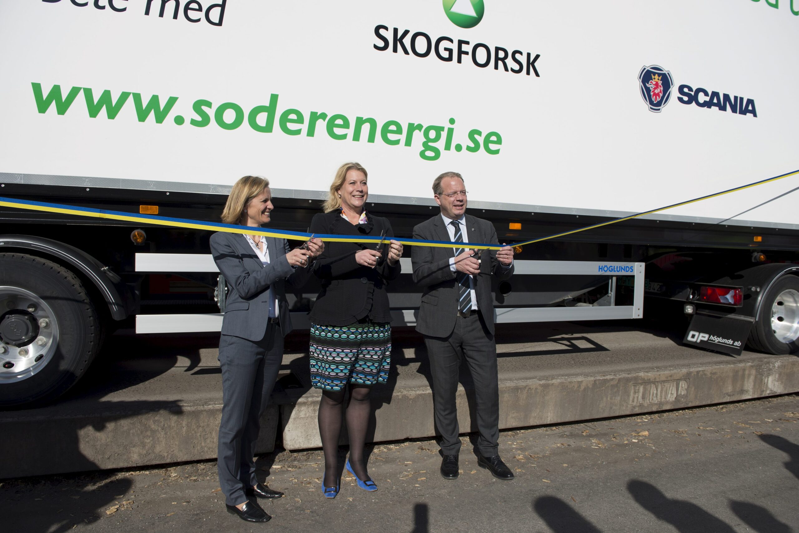 De truck gaat houtsnippers rijden tussen de brandstof-terminal van Söderenergi in Nykvarn en de Igelsta-centrale in Södertälje. Dit is slechts een korte afstand maar het feit dat de truck vijftig ton kan laden in plaats van de standaard 37 ton, maakt een enorm verschil.