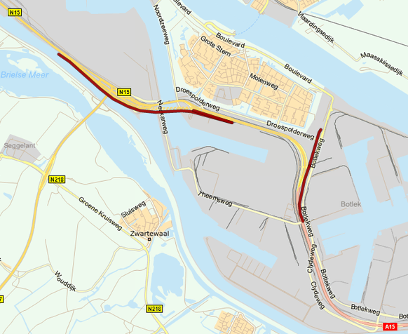 Doorgaand verkeer vanuit de Maasvlakte richting Rotterdam kan gebruik maken van de N57 en de N218 (Groene Kruisweg). Doorgaand verkeer vanuit Zeeland wordt via de A29 richting Rotterdam omgeleid. Via de afslag 14, Rozenburg op de A15, kan de A15 doorgaand bereden worden, maar er wordt hier veel vertraging verwacht. De omleidingsroutes zijn met borden aangegeven.