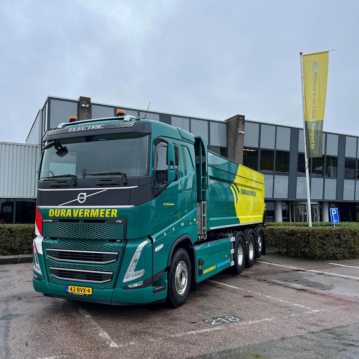 Na de eerdere investering in tien elektrische FH-trekkers voor een project langs de A1, heeft Millenaar & van Schaik nu ook acht FH Electric 8×4 tridem-bakwagens op de weg gezet. “We zochten een 8×4 chassisconfiguratie en hebben gekozen voor Volvo Trucks, omdat zij op dit moment de enige partij zijn die dit af-fabriek kan leveren. Volvo loopt voorop met zero-emissie, ook in de zware sector en blinkt uit in goede service”, zegt Dick Millenaar, Technisch Directeur bij Millenaar & Van Schaik Transport BV.