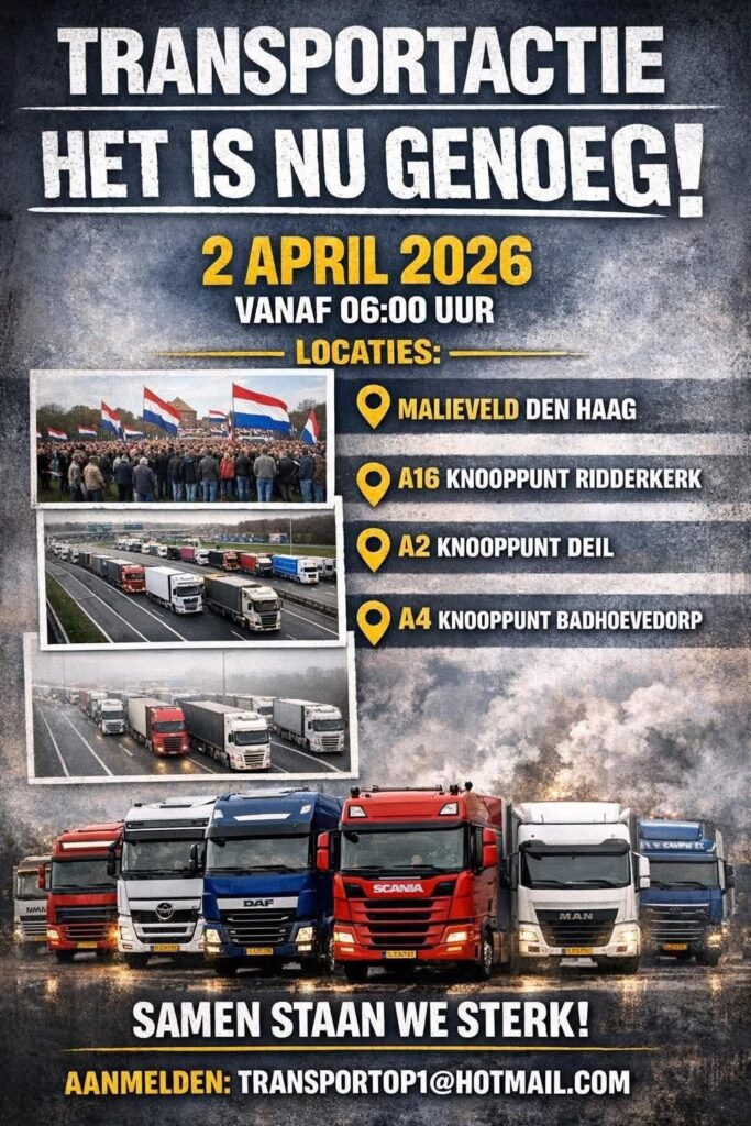 Aanleiding voor de actie zijn de stijgende brandstofprijzen. Die zorgen al langer voor onrust in de sector. Tegelijk laat deze actie opnieuw zien hoe lastig het blijft om transportbedrijven en chauffeurs massaal op één lijn te krijgen. De sector bestaat uit veel kleine bedrijven en zelfstandigen. Daardoor zijn landelijke protestacties vaker lastig van de grond te krijgen.