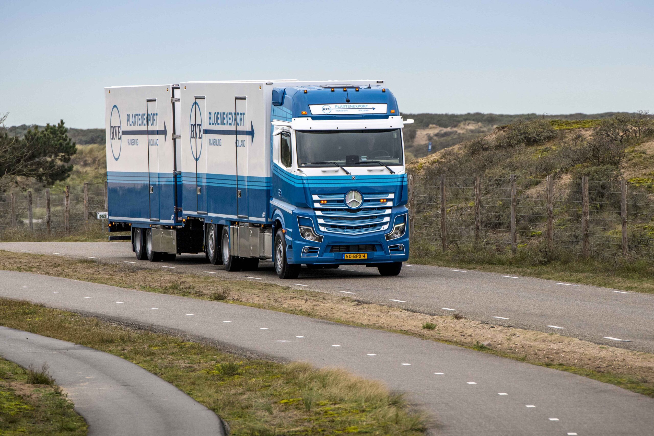 RVE Plantenhandel maakt voor het vervoer van planten en bloemen naar supermarkten in Duitsland gebruik van een gevarieerd wagenpark dat uit meerdere merken bestaat. In relatief korte tijd werden daar twee Mercedes-Benz Actros bakwagens aan toegevoegd. Afgelopen week werd de laatste, een nieuwe Actros 2548 LENA 6×2, in gebruik genomen. De volledig luchtgeveerde bakwagen met gestuurde en hefbare naloopas kreeg de voorkeur vanwege onder meer de innovatieve veiligheidsystemen. Met Active Brake Assist 5 en de MirrorCam is de standaard veiligheid hoog.