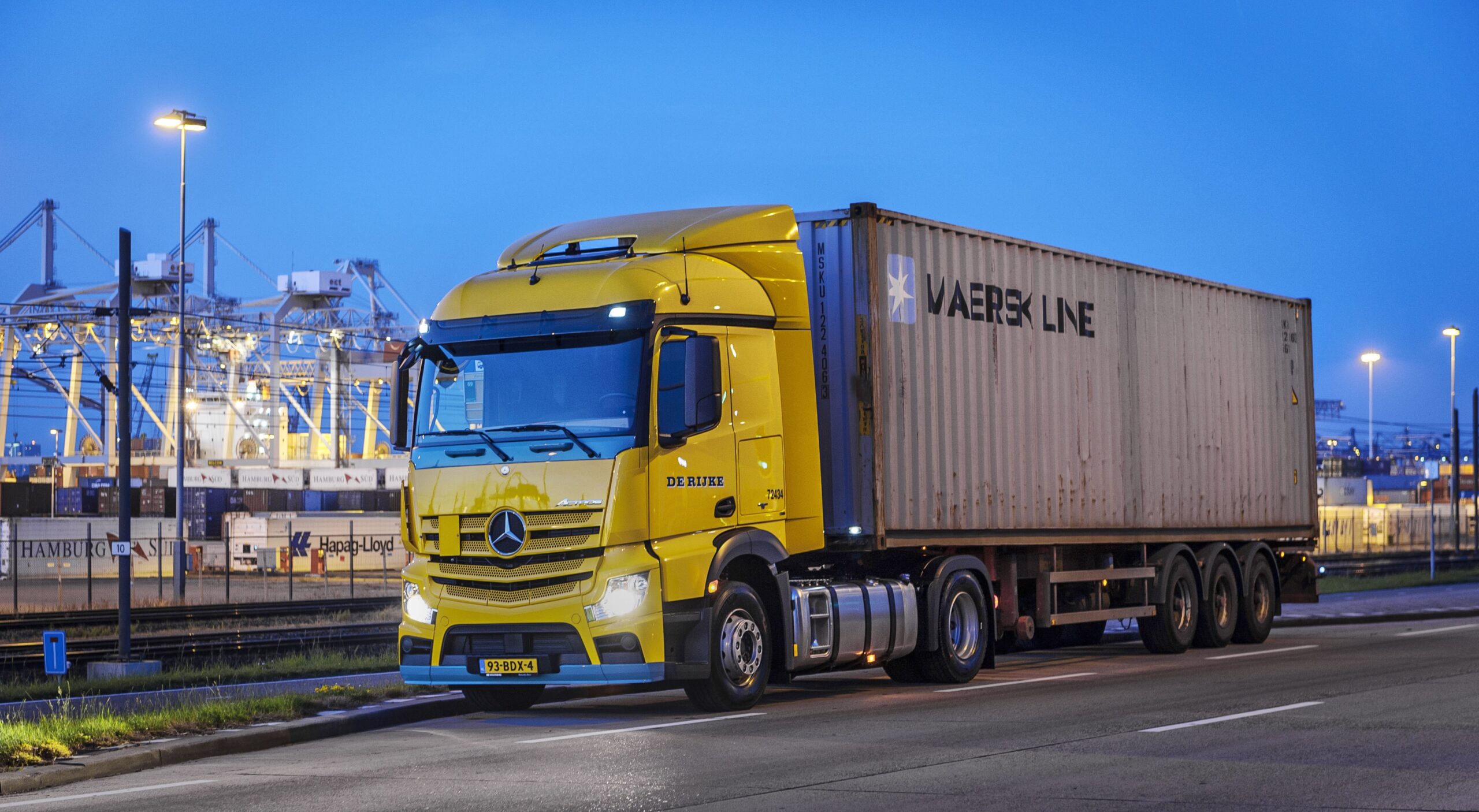 De tien nieuwe Mercedes-Benz trekkers van het type 1840 LS zijn onlangs geleverd en worden vooral ingezet voor korte ritten, met name in het containervervoer. Enkele worden echter ingezet met dubbele bemanning en zullen zodoende 24 uur per dag in gebruik zijn. Theo Nolde, Fleetmanager bij De Rijke: “Het is nog te vroeg om uitsluitsel te geven over het brandstofverbruik van de tien nieuwe vrachtwagens, maar de eerste resultaten zijn veelbelovend en ook de chauffeurs zijn enthousiast over de Actros.” Bij vijf van de nieuwe trekkers test het bedrijf bovendien een jaar lang het Mercedes-Benz telematicasysteem FleetBoard uit.