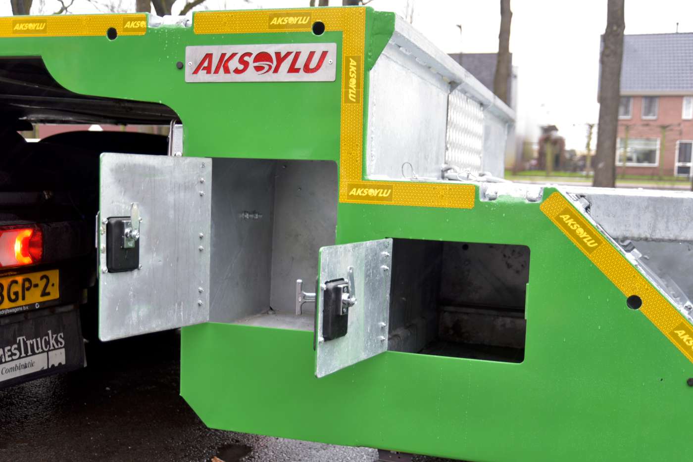 Aksoylu trailers worden geheel op klantwens geproduceerd in Turkije, en uitgerust met Europese componenten. Zo is alle hydrauliek, inclusief de lier op afstand te bedienen met afstandsbediening. De oplegger is verder uitgevoerd met BPW-assen, Wabco-remmen en electronica en Aspock verlichting. De eerste as is als liftas uitgevoerd.