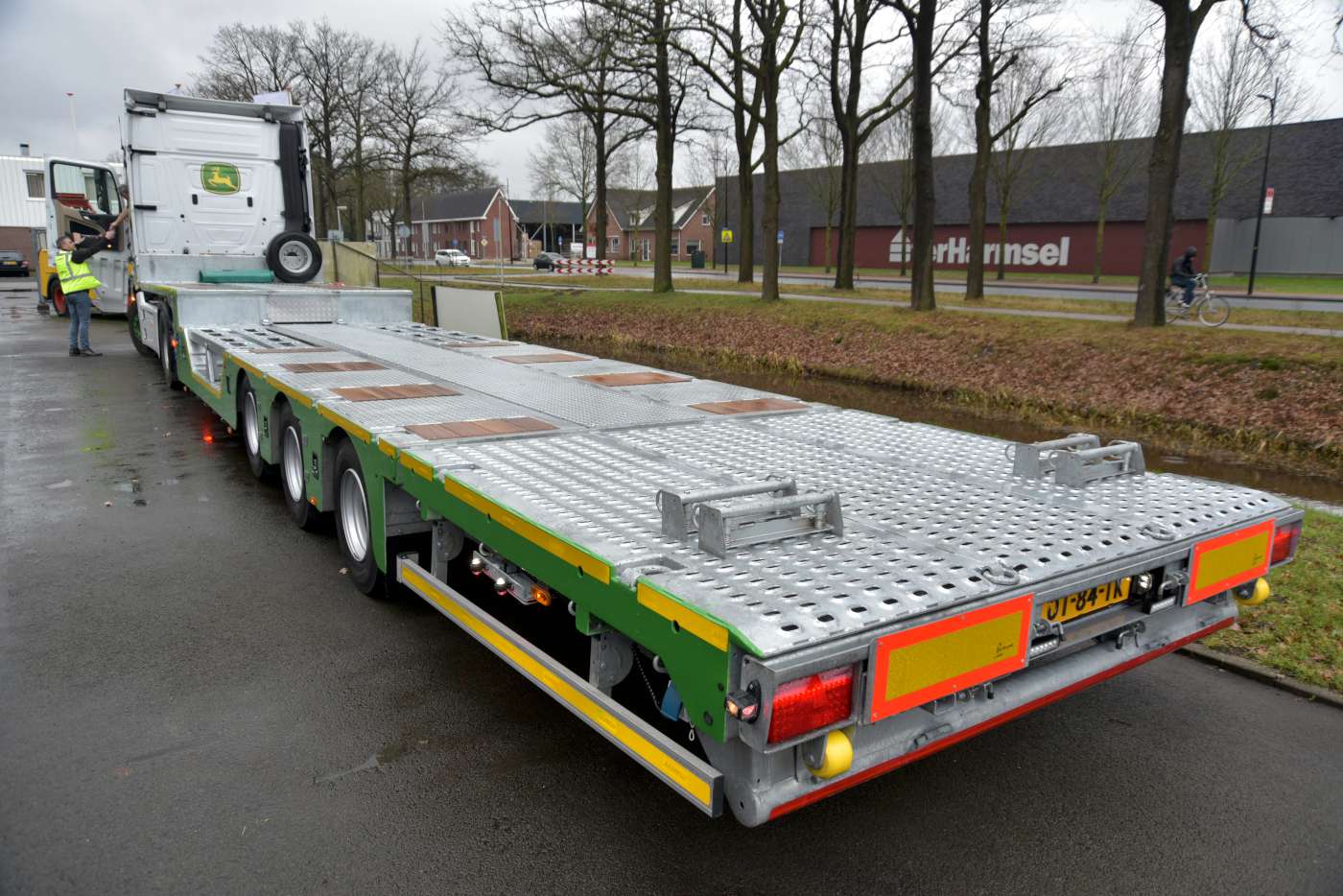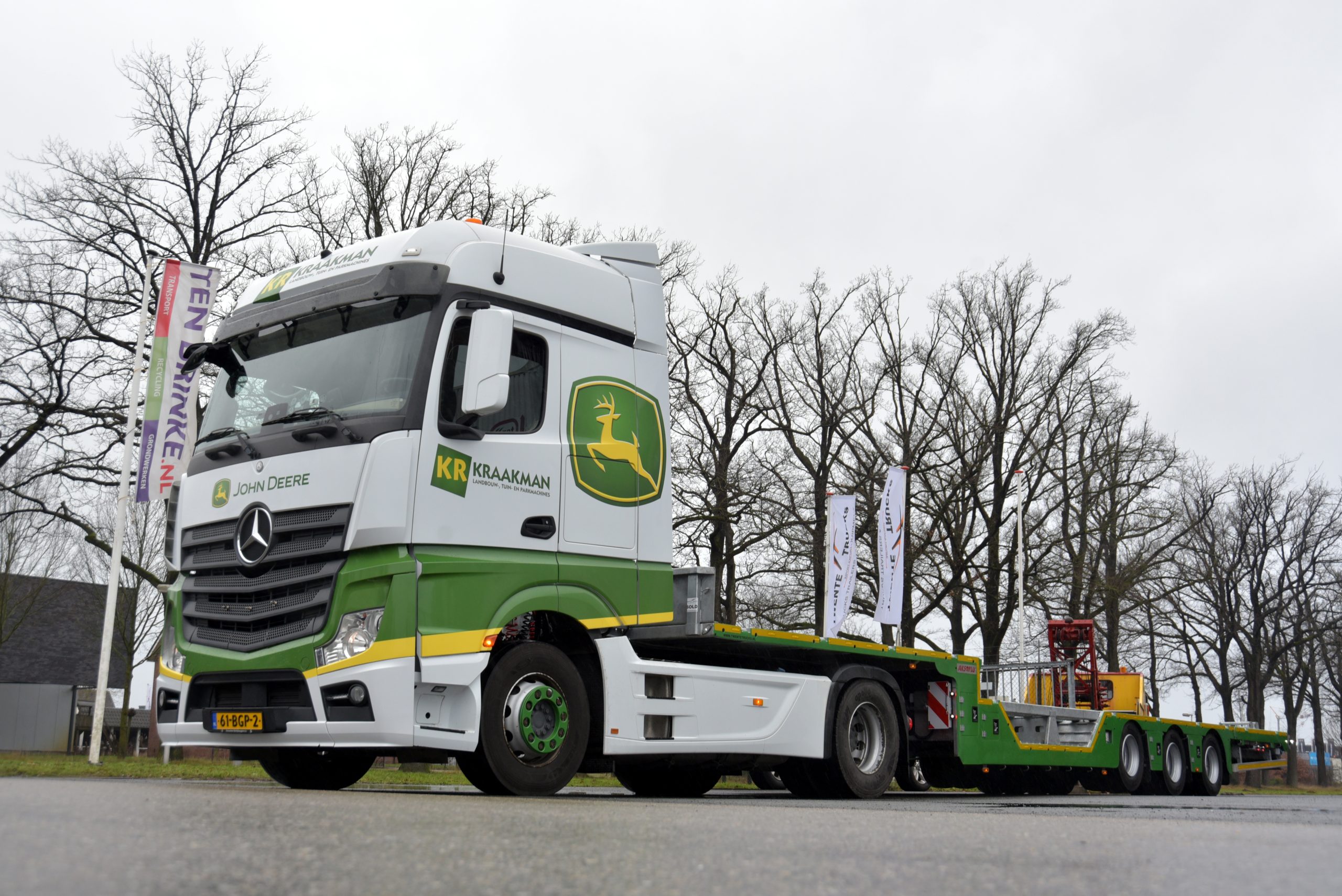 Het volledig gegalvaniseerde chassis is gespoten in de kleuren van John Deere dealer Kraakman. Dit bedrijf heeft 18 vestigingen door heel Nederland en vervoert de landbouwmachines met 6 eigen combinaties.