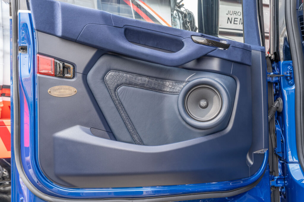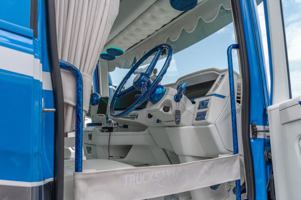 Dit interieur heeft de kleur van de truck, en die zie je niet vaak in een cabine. De jury prees de chique afwerking, je zou de kleur blauw niet bij de naam van dit bedrijf verwachten.