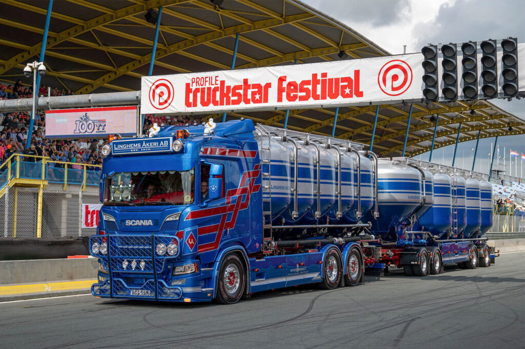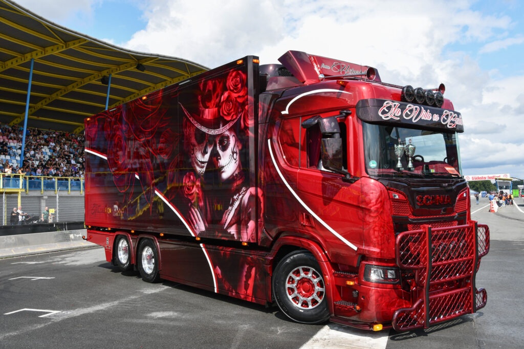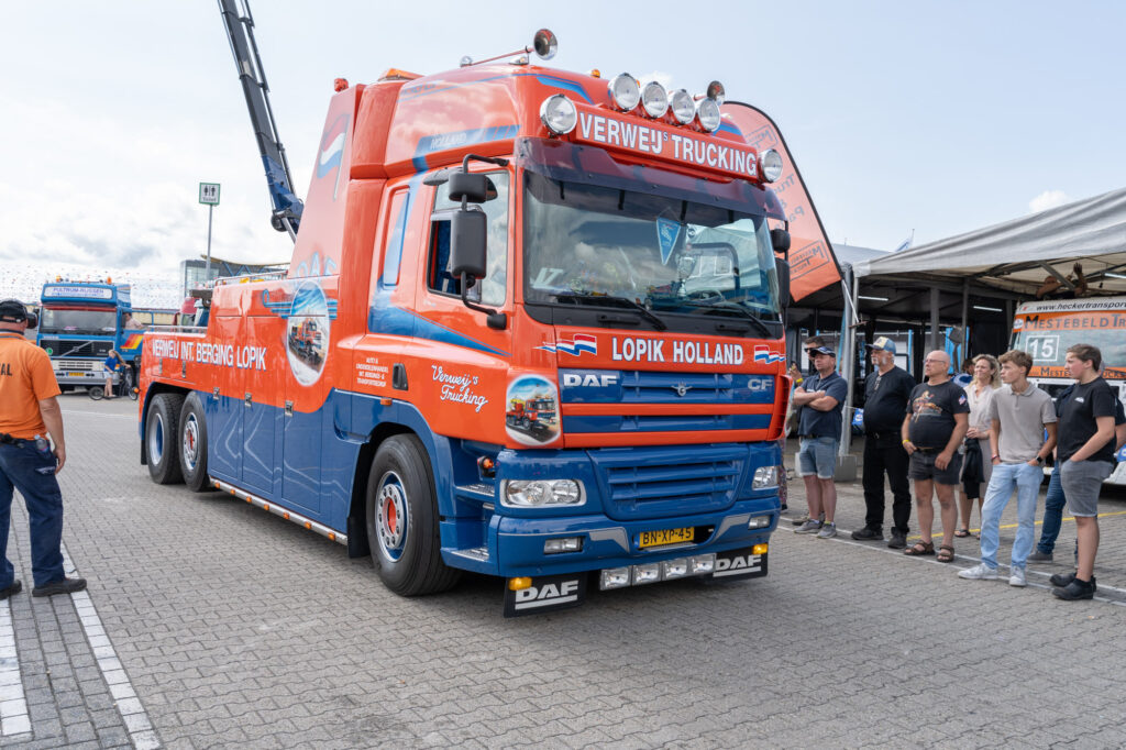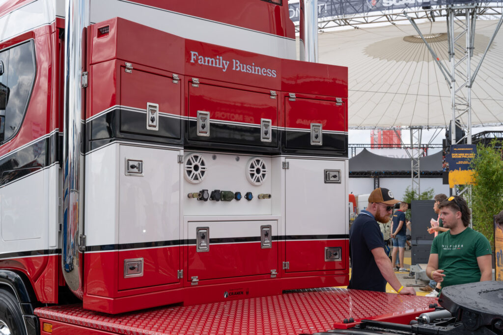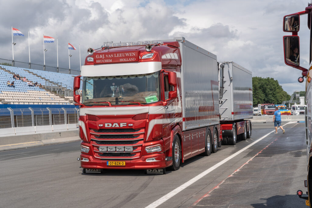 Een van de langste trucks op het terrein dit weekend is deze Scania bulktruck, een verschijning die we in Nederland niet vaak tegenkomen. Met zijn unieke opbouw en glanzende details is hij onmogelijk te missen.