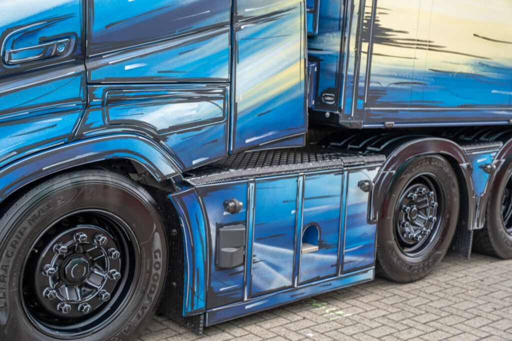 Deze Scania Torpedo is tot in de kleinste details perfect afgewerkt. De chauffeur begon ooit als wasjongen bij dit bedrijf, en zowel een van zijn eerste trucks als zijn huidige zijn prachtig afgebeeld op deze truck.