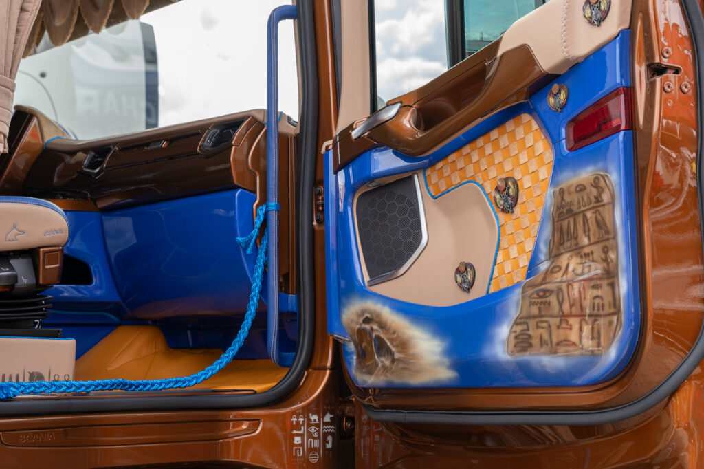 We hebben nooit eerder zoiets gezien in Assen. Deze special paint truck brengt de verf tot leven in het interieur van de Scania. Het Egyptische thema omringt je in deze truck, iets wat je niet elke dag ziet.