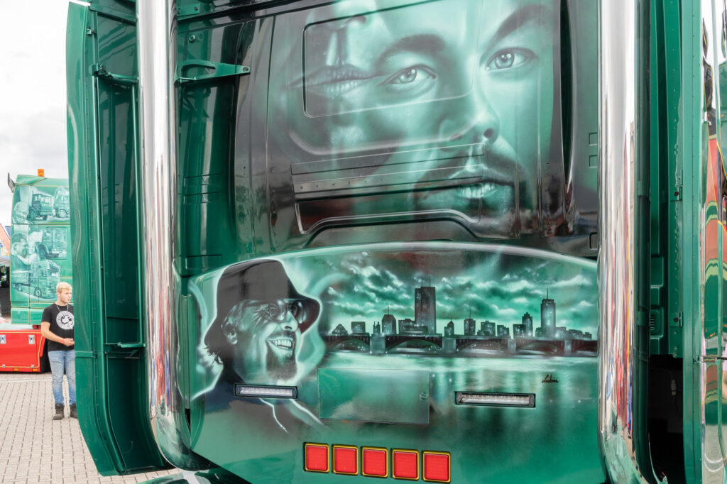 Deze airbrush sluit perfect aan bij de film The Departed. Elk detail is levensecht en brengt de personages tot leven op deze Scania. Het is meer dan alleen een truck, het is een cinematografisch meesterwerk.