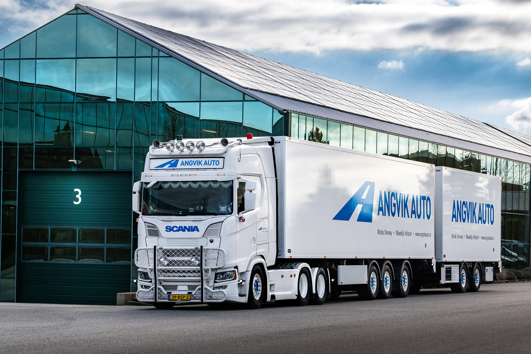 “Zo’n 15 jaar geleden kwam ik in aanraking met Svein en Angvik Auto AS. Na een aantal jaren intensief te hebben samengewerkt via mijn toenmalige werkgever kwam zo’n tien jaar geleden de vraag om een Nederlandse vestiging te starten,” aldus Van der Spruit, die Angvik Auto Holland in Maasdijk leidt. Dat het bedrijf trots is op haar historie blijkt uit de bijzondere belettering, een zwart-wit foto uit de jaren twintig, die op de achterdeuren van alle trailers prijkt.