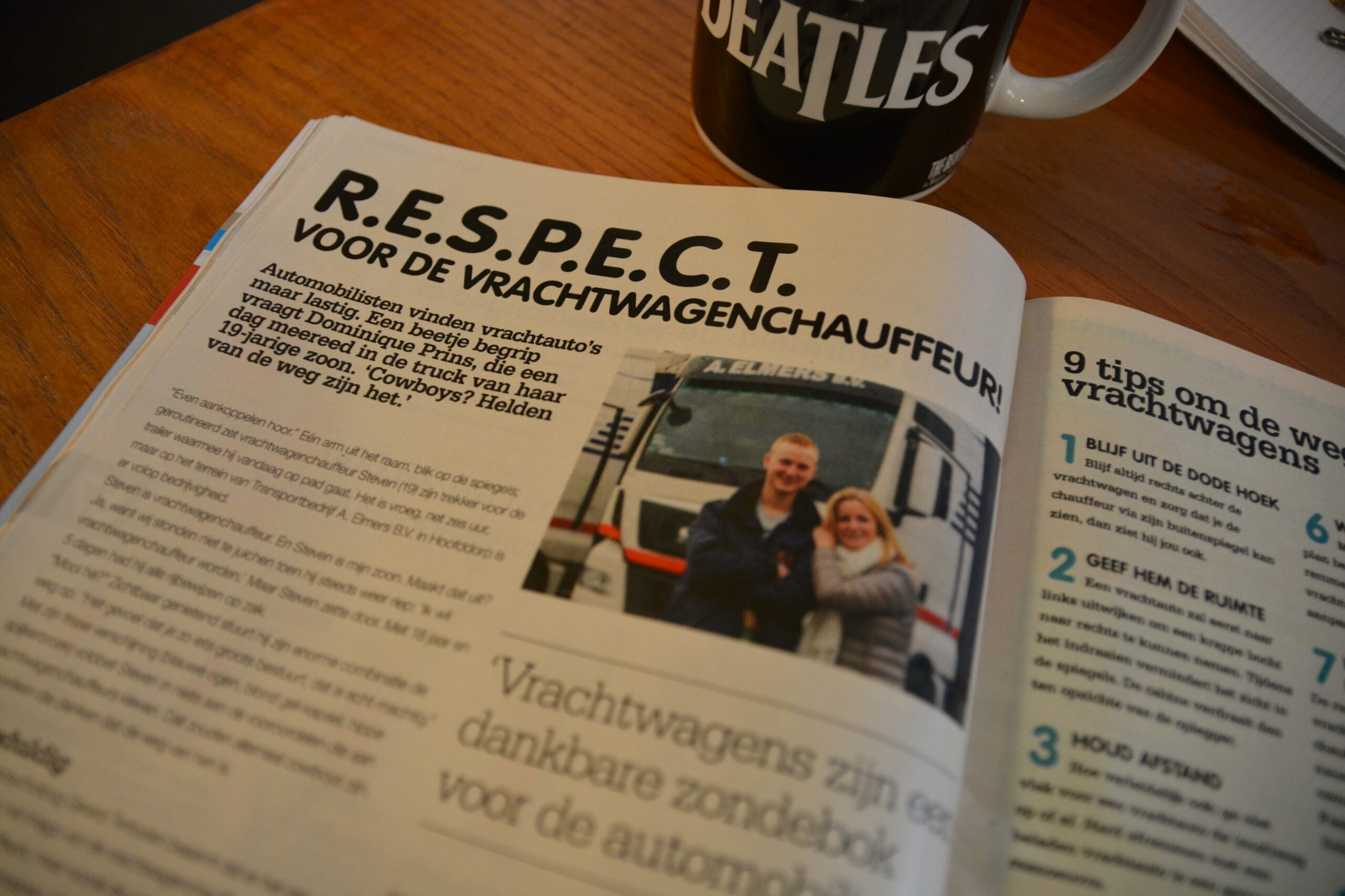 ‘Respect voor de vrachtwagenchauffeur!’ luidt de kop van het artikel. En dat vinden we best het vermelden waard. In het artikel laat de ANWB Kampioen op treffende wijze zien dat wij vrachtwagenchauffeurs helemaal geen lomperiken zijn, die denken dat de weg van hen is.