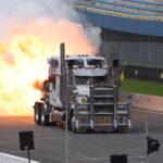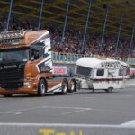 Vind je het heerlijk om op de tribune naar spectaculaire shows te kijken? Dan ben je op het Truckstar Festival aan het juiste adres! Ook dit jaar is er weer een afwisselend baanprogramma dat inmiddels in volle gang is! Zo gaven de racetrucks vanochtend bij aanvang acte de presence en werden rond de klok van elf uur weer heel wat caravans platgelegd. Indian Pete – je weet wel, die Indiaan met die dikke Amerikaanse truck – liet zijn bijzonder uitgedoste Kenworth W900 brullen voor de hoofdtribune en daarna vond de voorronde van de Decibellencontest plaats. Willy Oosterhuis – Loat Goan!! – voorziet ook dit jaar de activiteiten van verrijkend en diepzinnig commentaar en dat staat garant voor veel vertier.