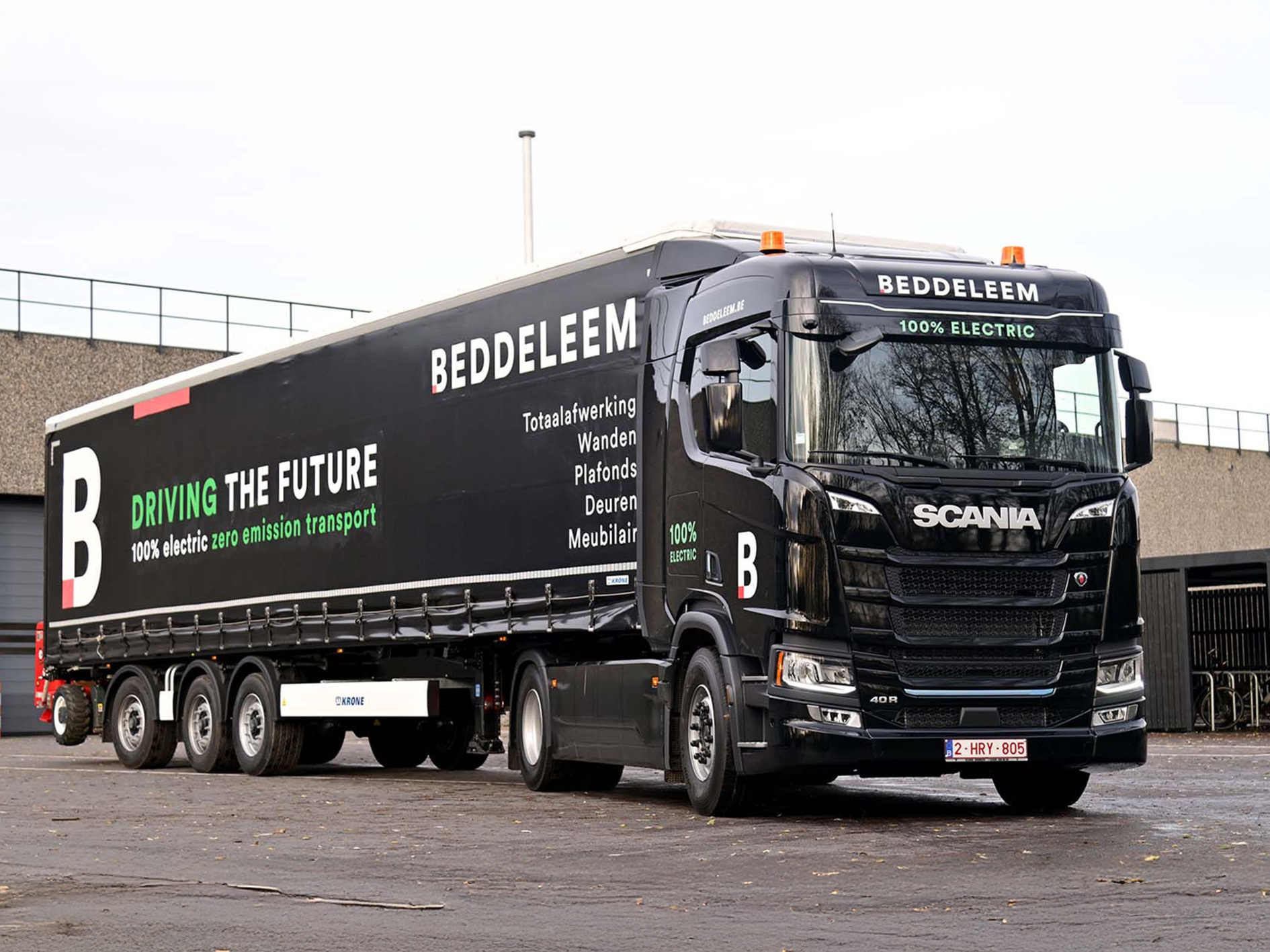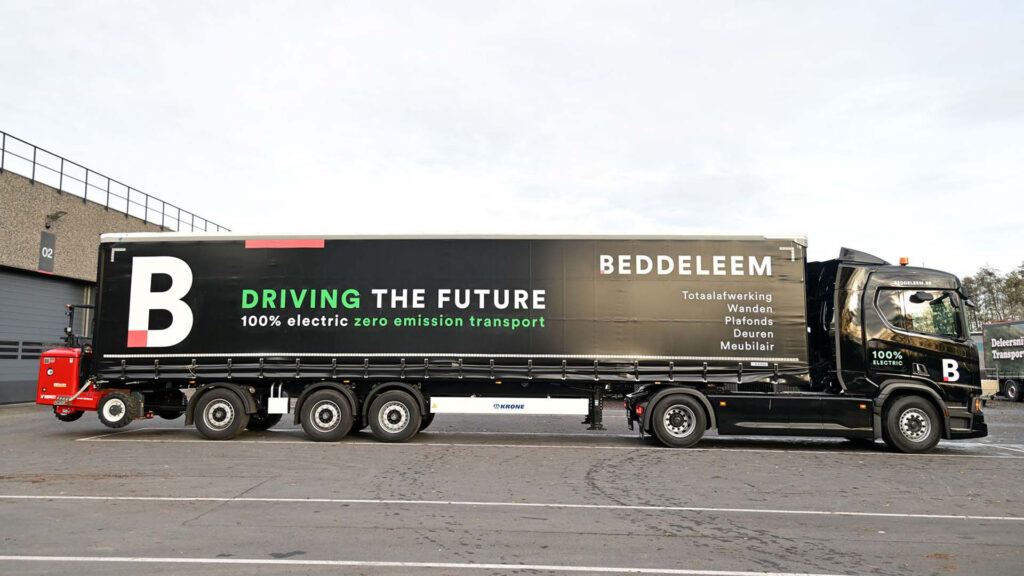 In het kader van zijn duurzaamheidsstrategie schakelt Beddeleem over op elektrische leveringen. De in Nazareth-De Pinte gevestigde specialist in de duurzame inrichting van gebouwen binnen de kantoor-, zorg- en utiliteitssector kiest daarbij voor een Scania BEV, die voor 100% met groene stroom opgeladen wordt, grotendeels uit eigen productie.