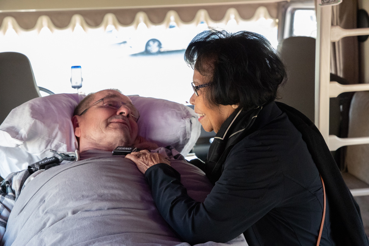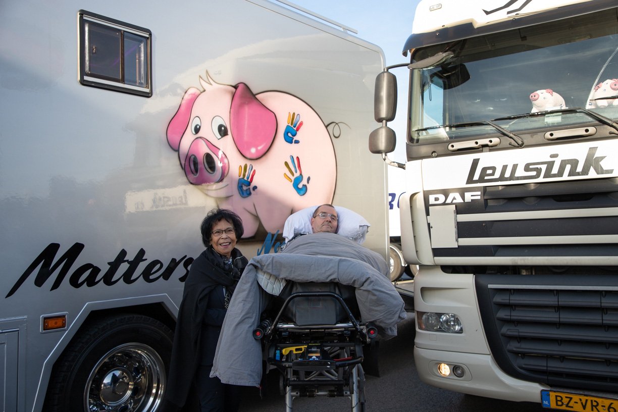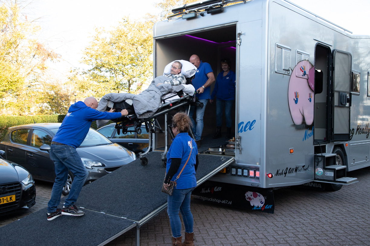 Petra en Marion waren op zoek naar iets waar John zijn momenten van toen weer even kon beleven en kwamen uit bij Noah4All. De wens werd ingestuurd en zo stonden wij met de brancard en al aan het bed van John. Verbaasd was hij wel en in no time lag hij comfortabel in de Noah4All Wens truck genietend van het uitzicht.
