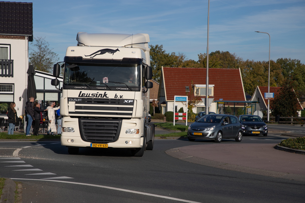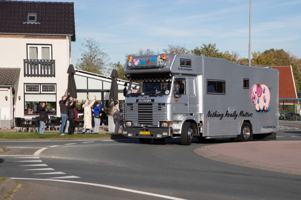 De rit ging naar onze verzamelplek, de Scania-dealer in Gaanderen. Zij stonden gelijk klaar met een vervangende truck toen bleek dat er een truck uitviel. De garage staat dicht bij de oude locatie van Leusink, daar stonden oud-collega’s hem op te wachten en begroeten John met een warme omhelzing. Tijden van toen herleven en de verhalen kwamen weer boven, gezien zijn toestand was dat soms hard werken maar dat is John wel gewend.