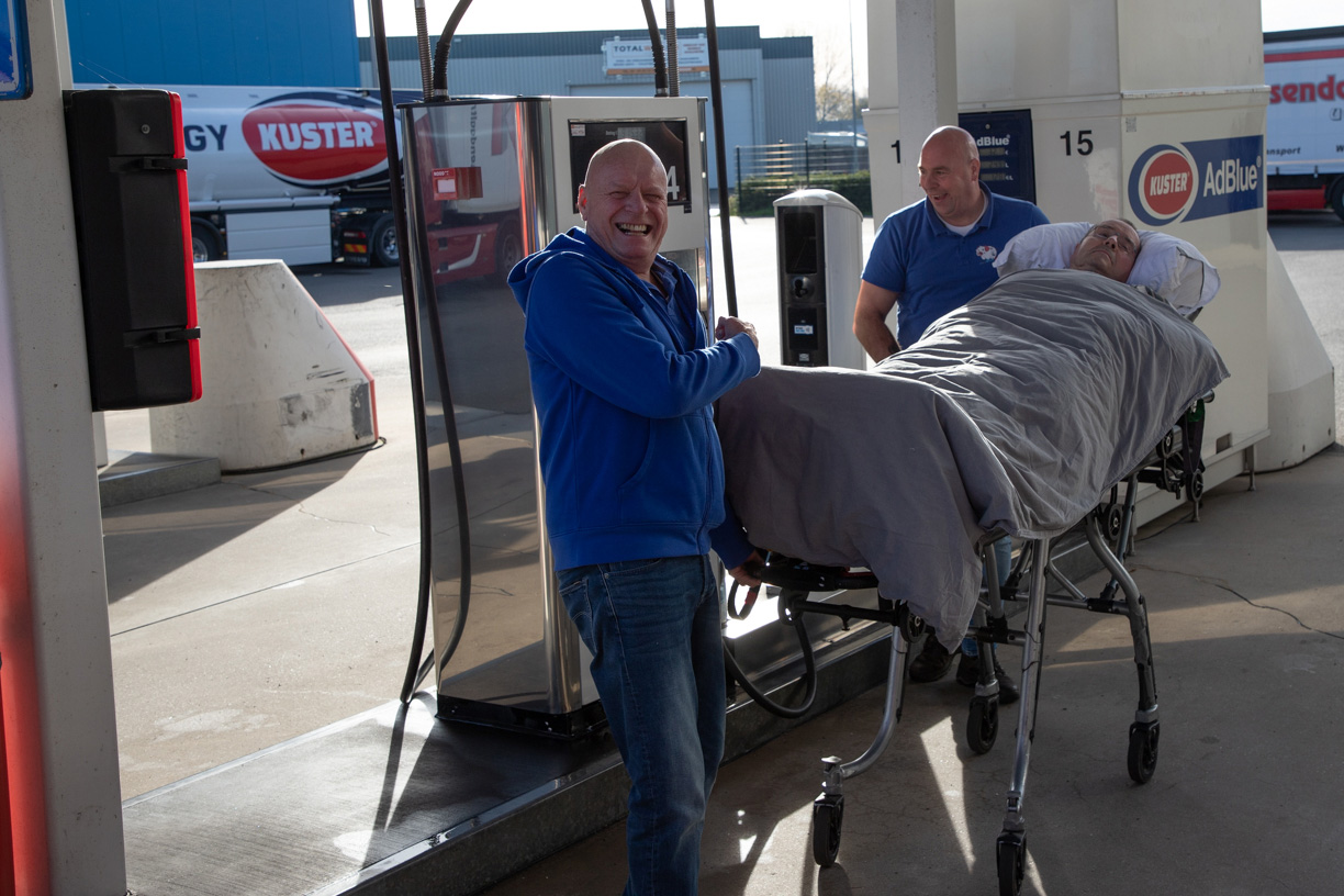 Het enthousiasme waarmee zij ons onthaalde maakte de dag compleet. Normaal gesloten, maar speciaal voor deze wensdag heeft ze haar deuren geopend. Zo kon John zonder al te veel extra ogen van vreemden genieten van zijn lunch op zijn ‘bed’. Het buffet was meer dan genoeg en alles wat overbleef mochten wij meenemen en uitdelen in het verzorgingshuis, dit geeft aan hoe groot het hart is van Truckstop Babberich.