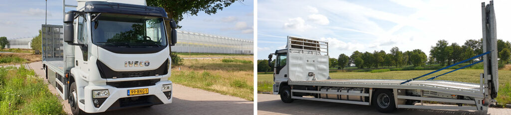 “We reden eerst met Iveco Daily bakwagens, maar vanwege de drukte en de vele verre ritten hebben we besloten om ons wagenpark uit te breiden met een Eurocargo. We hadden de wens om twee toiletwagens tegelijkertijd te kunnen vervoeren. De vrachtwagen is door Van Rijssel Carrosseriebedrijf B.V. uit Asten voorzien van een speciale oprijbak, met lier om de toilet en douchewagens op hun plek te kunnen trekken. We hebben bewust hiervoor gekozen, aangezien we een rit minder hoeven te rijden en de CO2 uitstoot kunnen reduceren”, aldus Rob van den Berg. Berg Verhuur BV denkt zelfs al na over de aanschaf van een tweede Eurocargo. “Het scheelt ons zoveel tijd en het werkt uitermate effectief”, zo vertelt Rob met een tevreden gevoel.
