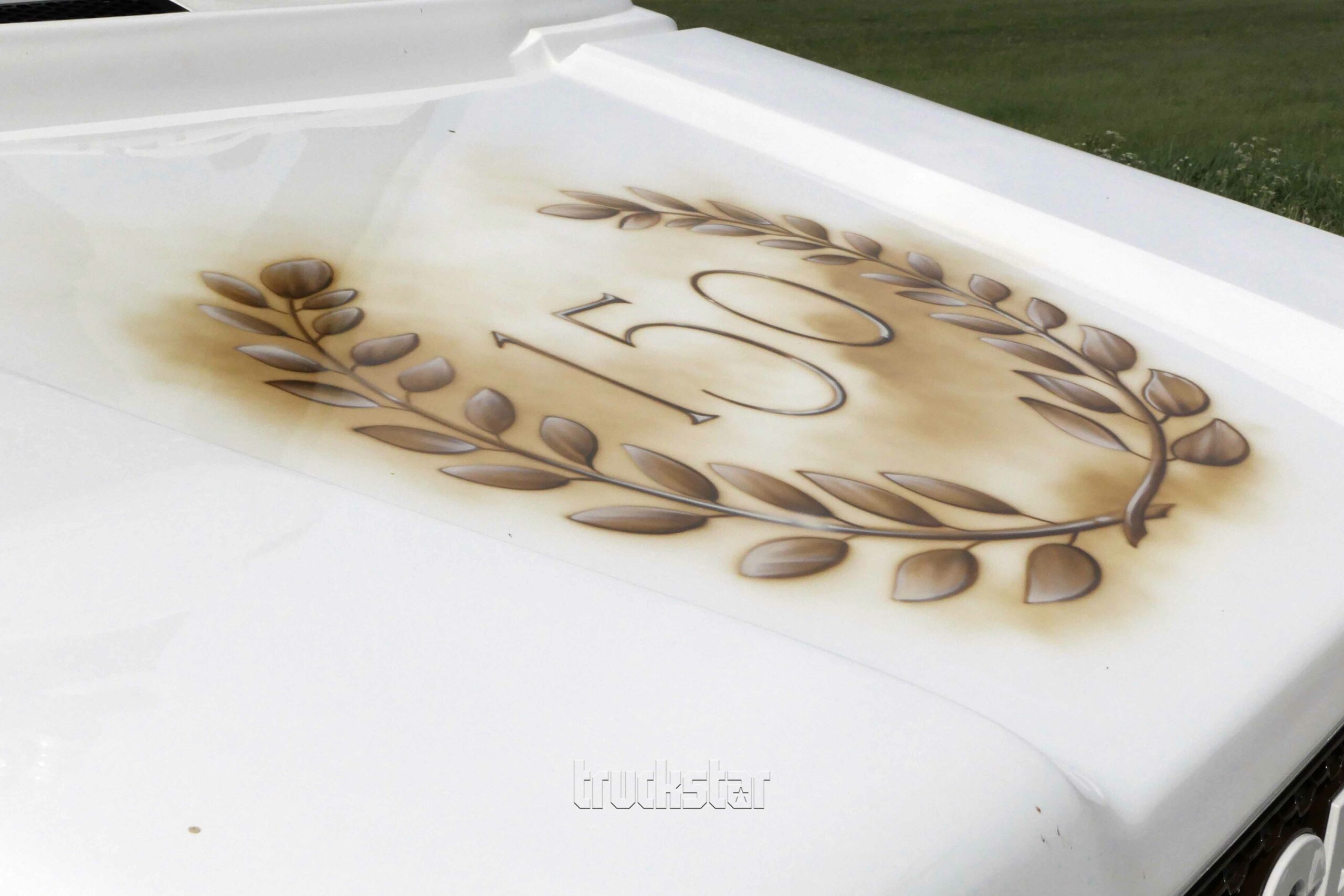 “Eerst wilde ik gewoon een dikke truck, maar met het 150-jarig jubileum in aantocht ontstond het idee om een vrachtwagen te laten bouwen die nog heel lang een blijvende herinnering aan dit jubileum zou vormen. En ik ben gek van vrachtwagens en van een V8, dus toen bleef er maar één merk over”, vertelt Germ. Om er iets bijzonders van te maken, heb je een specialist nodig. Zo kwam Wiersma uit bij de firma Vlastuin in Renswoude. “Eerst wilden we gewoon een Scania S mooi laten opbouwen, maar toen ik daar al die foto’s van Scania-torpedo’s zag, werd ik gewoon wat week in de benen. Hoe gaaf zou zoiets zijn. Na veel praten hebben we uiteindelijk besloten om voor een neus te gaan. Als je zo’n project aangaat, moet je het gewoon ook meteen goed doen.”