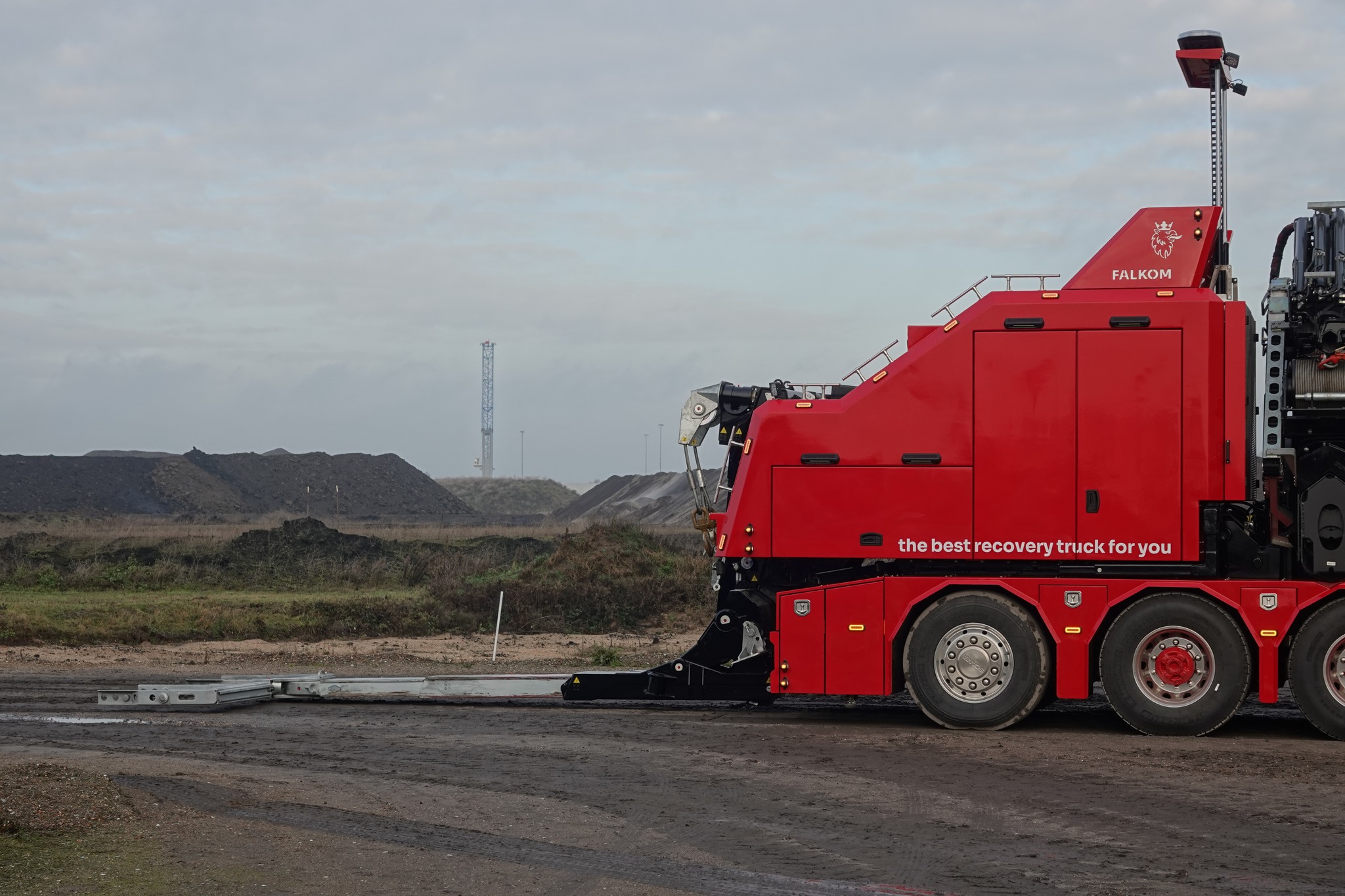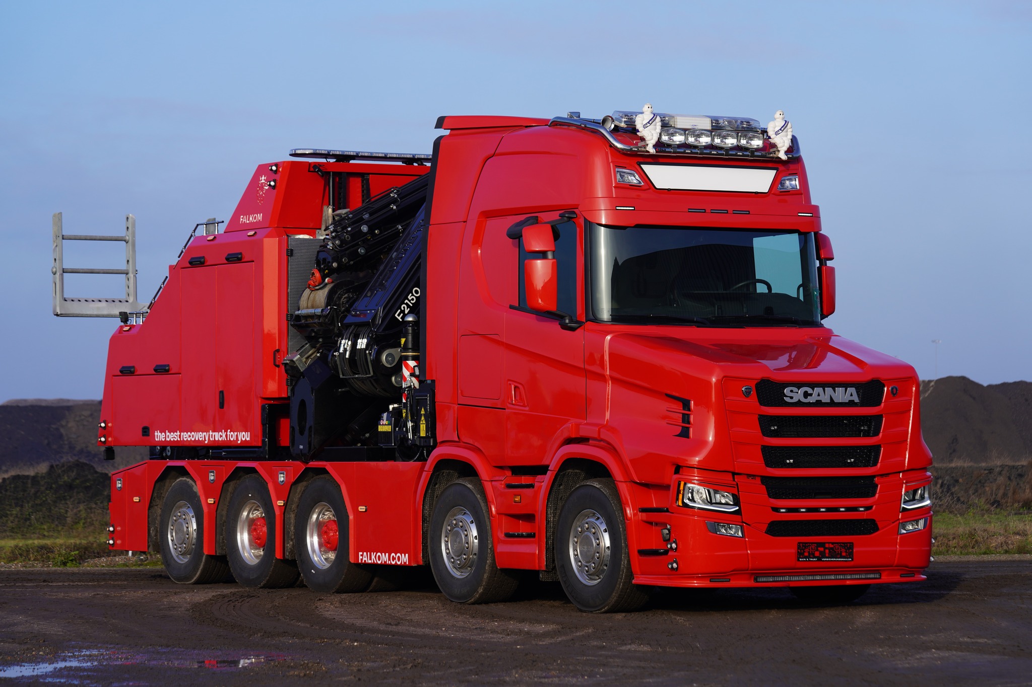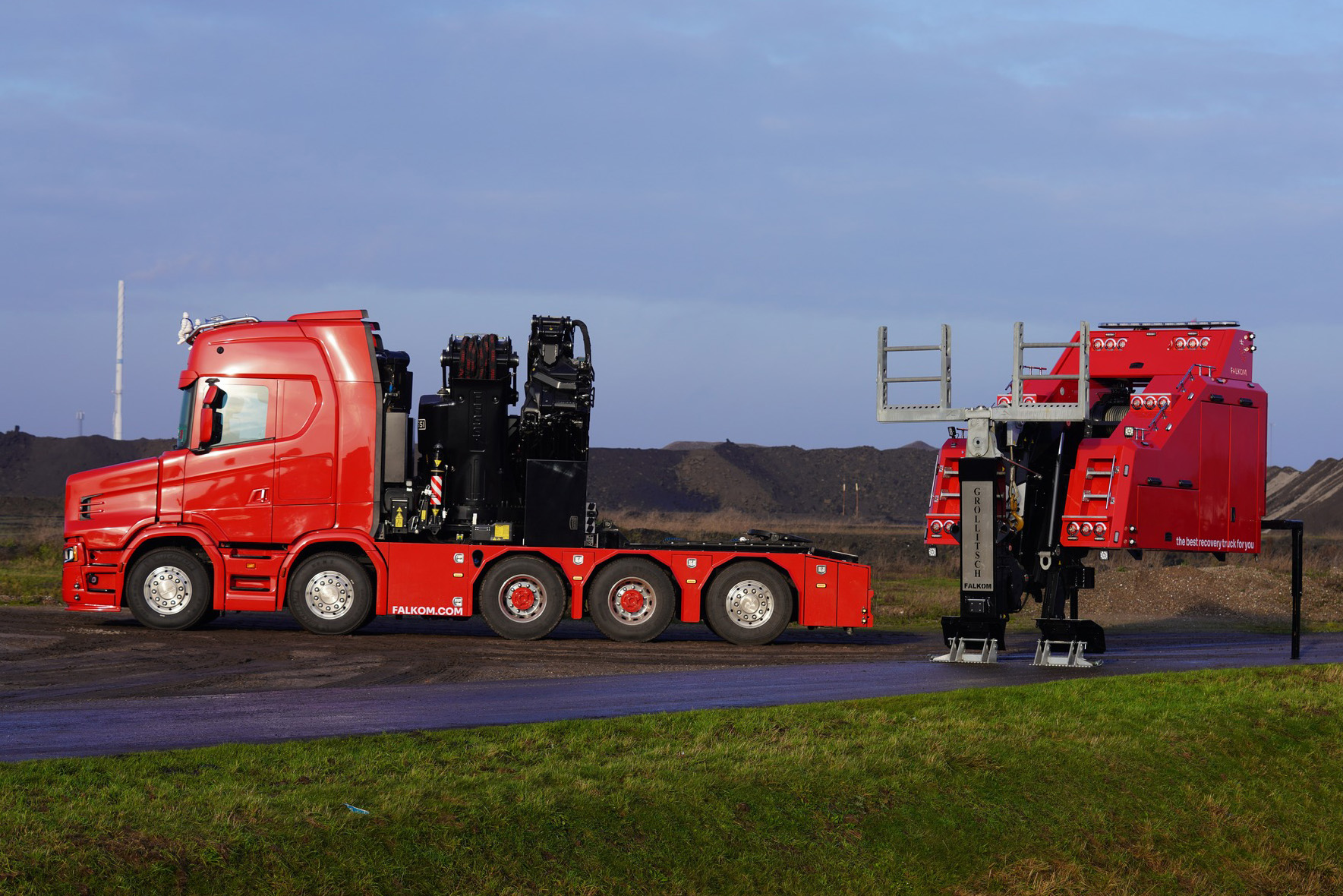 Nadat Vlastuin een torpedotruck van de Scania maakte is de truck in Duitsland voorzien van een extra as. De Fassi F2150, een autolaadkraan met een capaciteit van 160 tonmeter, heeft een bereik van 31 meter. Achter deze kraan is een bergingsopbouw geplaatst, vervaardigd door Falkom in Tiel, met een lepel, een kraanarm en twee lieren. De gehele opbouw is afneembaar, waardoor men een trekker van de bergingstruck kan maken. Deze zou zo ingezet kunnen worden voor het wegslepen van trailers.