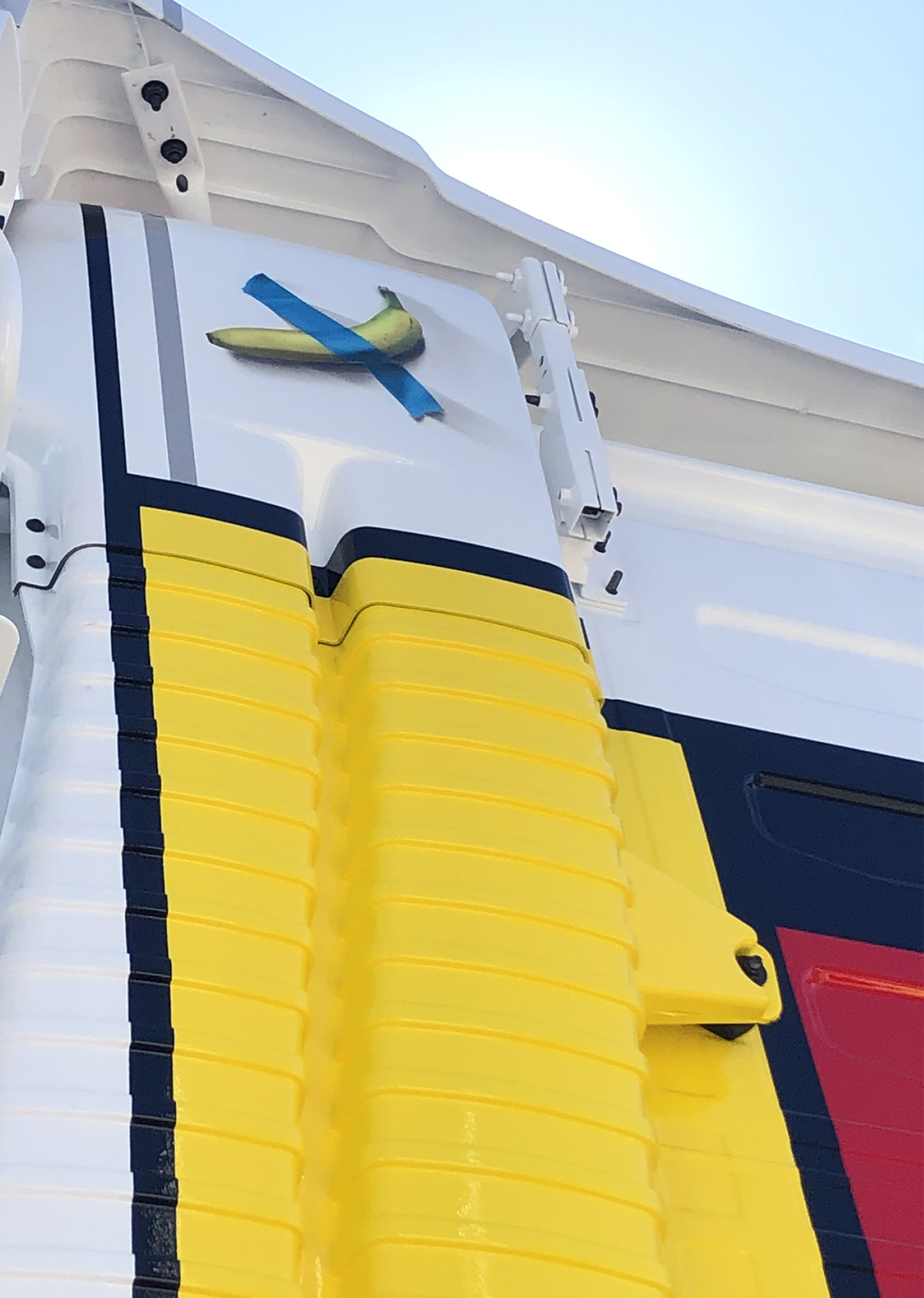 Bovenaan de luchtinlaat, achterop de cabine bevindt zich airbrush van een banaan vast geplakt met tape. Het is geïnspireerd op het werk van de Italiaanse kunstenaar Maurizio Cattelan, dat vorig jaar in Miami voor maar liefst $ 120.000 werd verkocht.