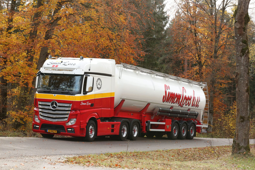De lijnen van de slanke neus sluiten strak aan op de cabine. De neus is vrij smal gehouden waardoor er, net als bij de oude Torpedo’s van Scania fraaie spatborden ontstaan. Ook de grille staat iets naar voren en daardoor oogt de truck net even anders dan bijvoorbeeld de neus van Vlastuin. Deze 660S is nummer 19 uit de Tuft-serie. In Nederland zie je er weinig, waardoor hij direct opvalt in de vloot. De truck past bij de traditie van Simon Loos om zo nu en dan speciale voertuigen te laten bouwen.