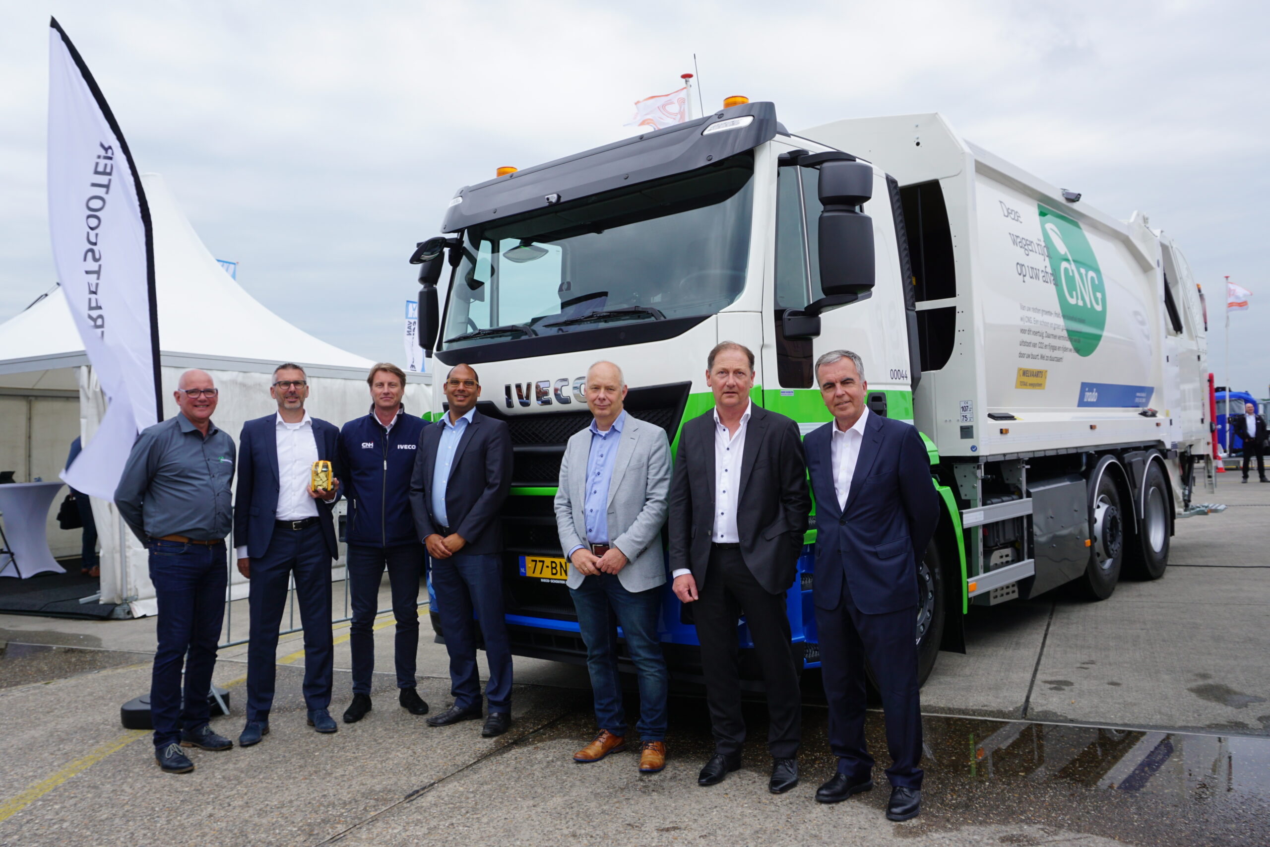 Vuilverwerker Irado mocht op de Reinigings Demo Dagen de sleutel van de eerste nieuwe Bio-CNG Iveco in ontvangst nemen. De opbouw en het beladingssysteem komt van Geesinknorba, Welvaarts leverde het weegsysteem en Trigade installeerde een camerasysteem waarmee de chauffeur 360 graden rondom zijn voertuig kan kijken. De wagens gaan rijden op basis van zelf ingezameld afval.