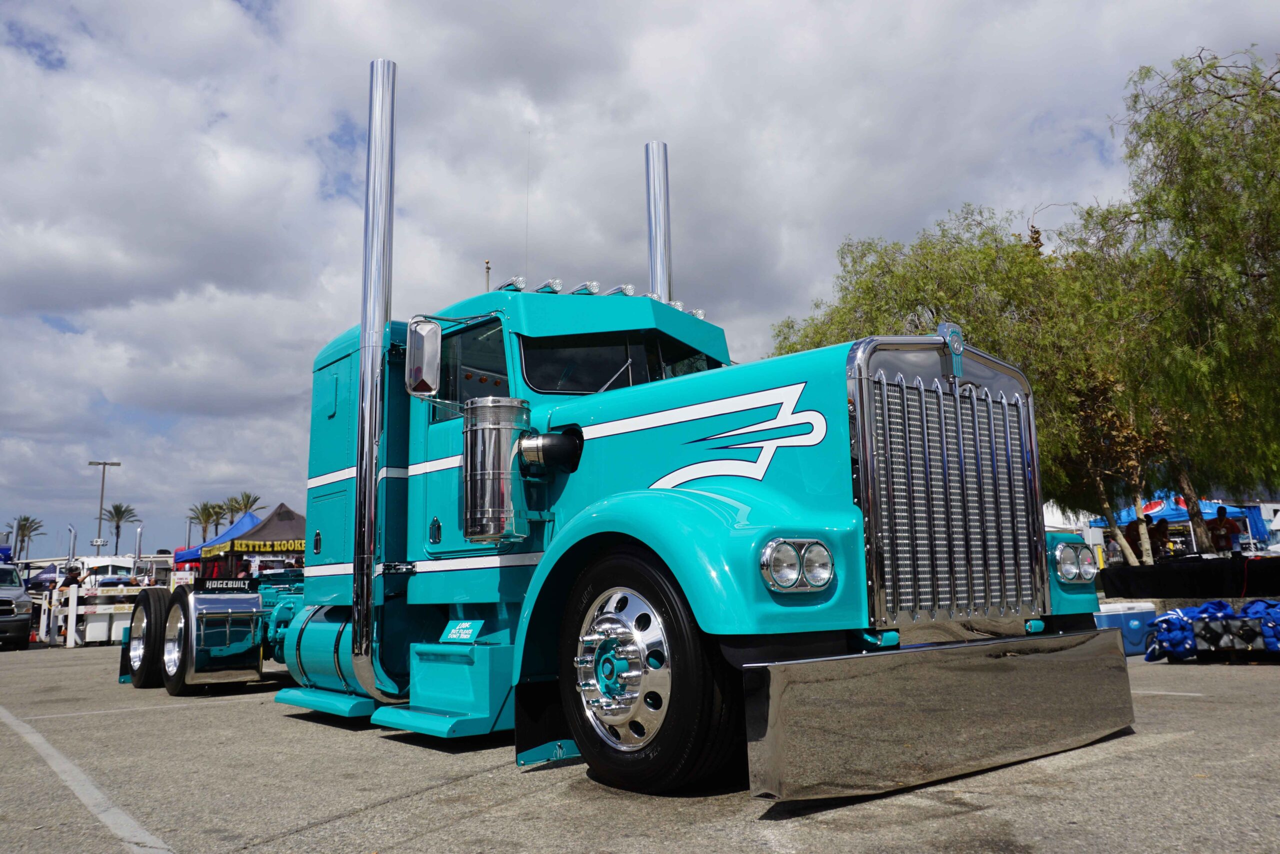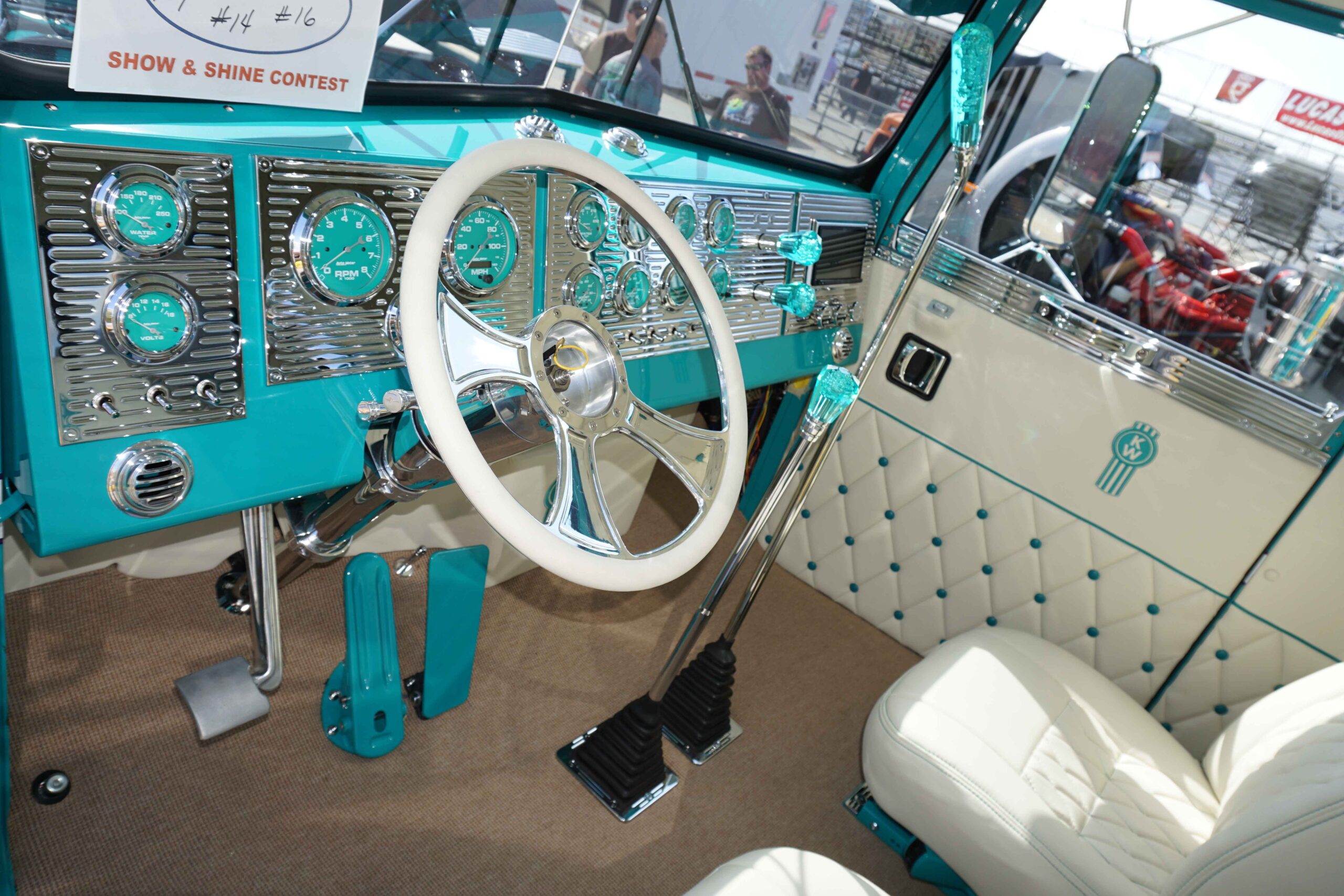 - Het dashboard van de Kenworth W900 werd grotendeels verchroomd.