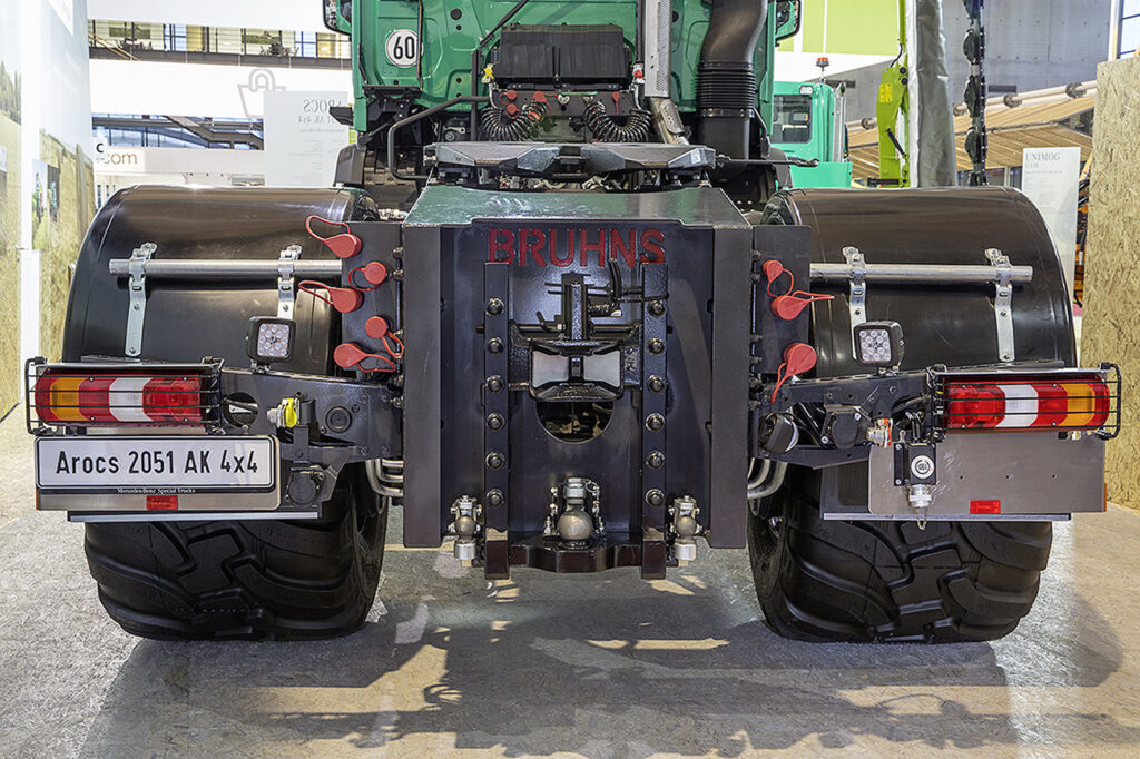 De PTO-as draait met 1.000 tpm en is verbonden met een belastingafhankelijk hydraulisch systeem. Er zijn acht algemene en vier specifieke hydraulische aansluitingen voor werktuigen, en een Isobus terminal. In combinatie met diverse koppelsystemen en een achteruitkijkcamera maakt dit alles deze bijzondere Arocs 4×4 tot een allrounder op land en weg.