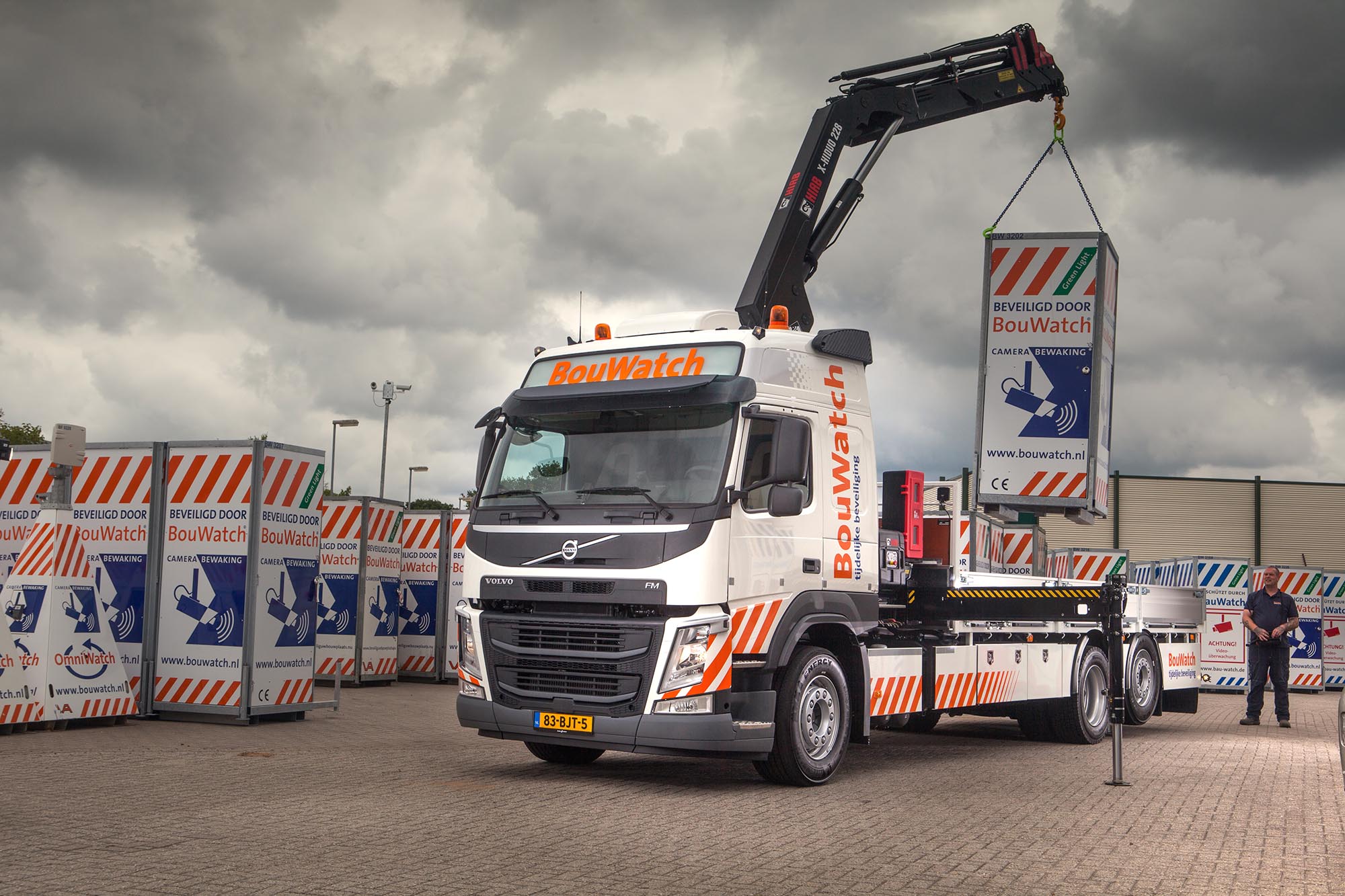 BouWatch uit Assen heeft haar wagenpark uitgebreid met drie Volvo FM 330 bakwagens met autolaadkraan. Het bedrijf is gespecialiseerd in de ontwikkeling en verhuur van mobiele beveiligingscamera’s.