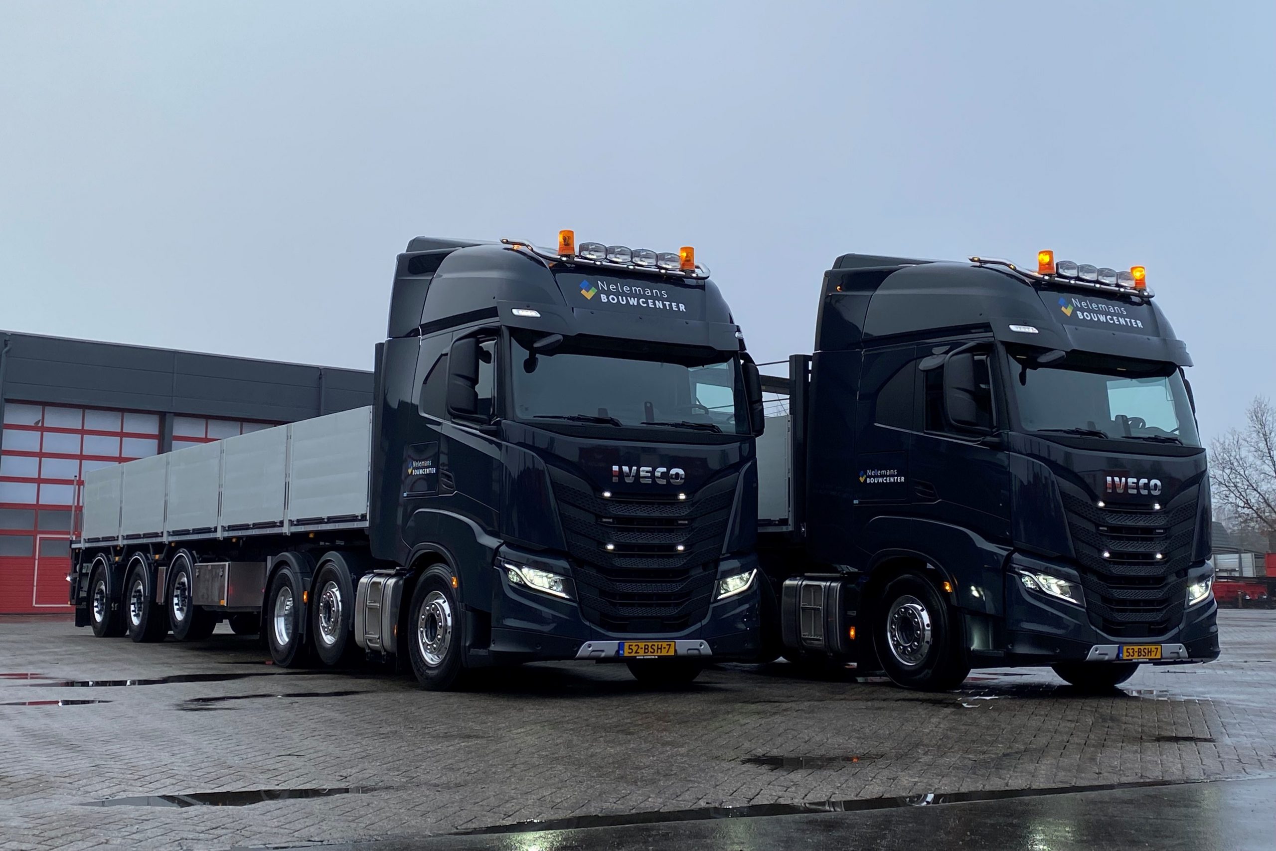 De nieuwe trucks worden geleverd door Johnno Willemsen van Iveco Schouten Etten-Leur. De trucks zijn in goed overleg naar wens van de chauffeur samengesteld met Henry van den Berg van bouwcenter Nelemans.