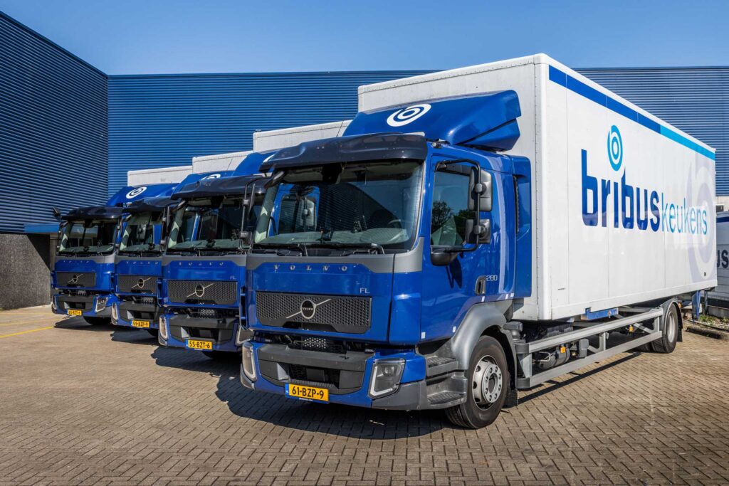 Bribus levert wekelijks zo’n 1.000 keukens door heel Nederland. Een groot deel van het transport gebeurt met eigen materieel: dagelijks rijden negen eigen trucks vanuit Dinxperlo naar klanten, voornamelijk woningcorporaties, bouwbedrijven en zorginstellingen. Negen oude Volvo FL-bakwagens zijn recent vervangen door vijf nieuwe Volvo FL 280 4×2-bakwagens en vier Volvo FM 330 4×2-trekkers met citytrailers. “We willen zoveel mogelijk keukens met zo min mogelijk kilometers aan onze klanten leveren”, zegt Edwin Stevering, operationeel directeur van Bribus. “Dat is het uitgangspunt geweest en de overstap naar de Volvo FM-trekkers met de citytrailers helpt ons daarbij. Daarmee kunnen we per rit anderhalf keer het volume meenemen in vergelijking met onze Volvo FL-bakwagens met wissellaadbak. Dat betekent: minder ritten, minder uitstoot en efficiënter transport.”